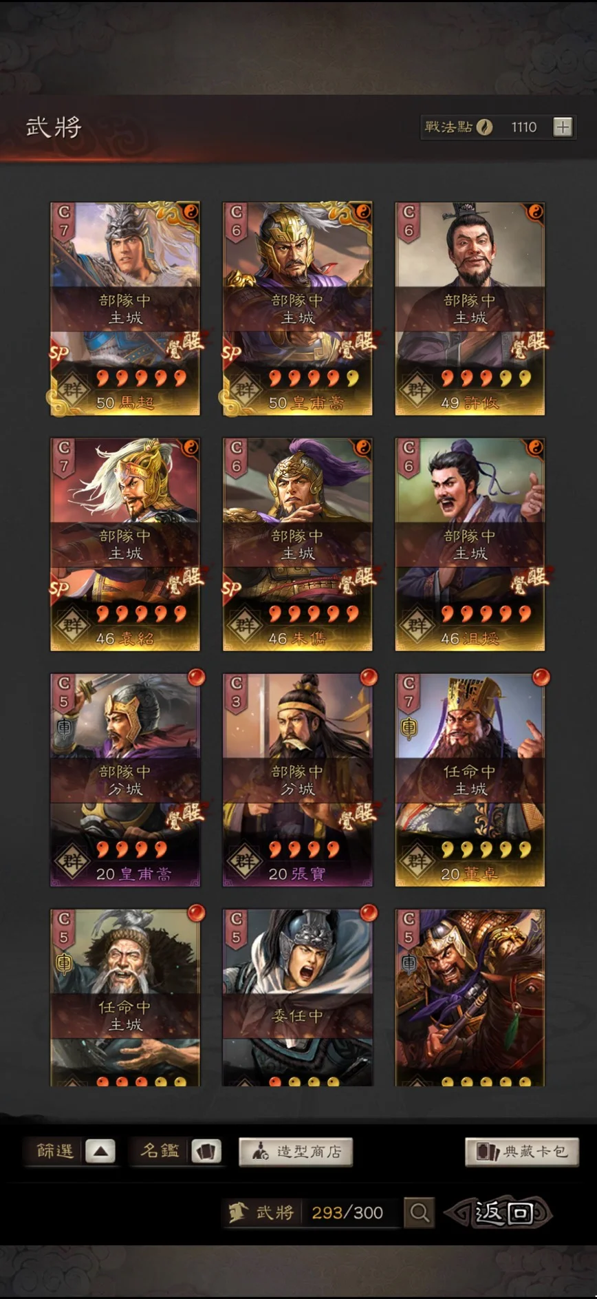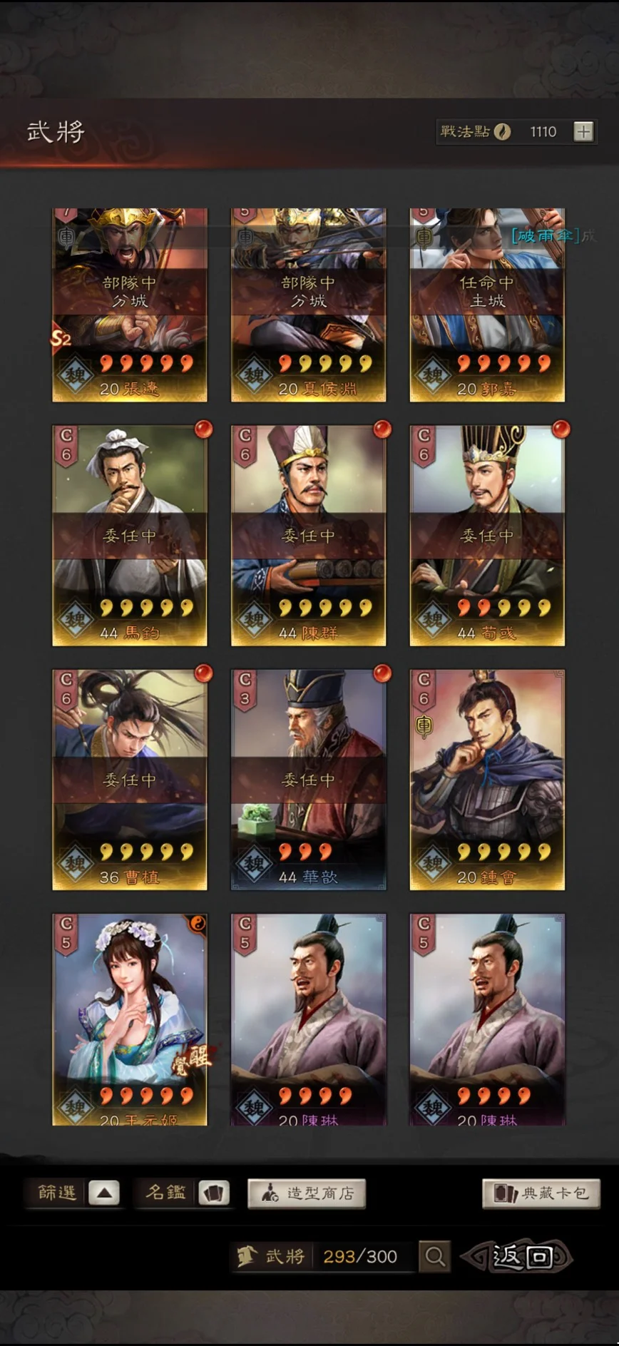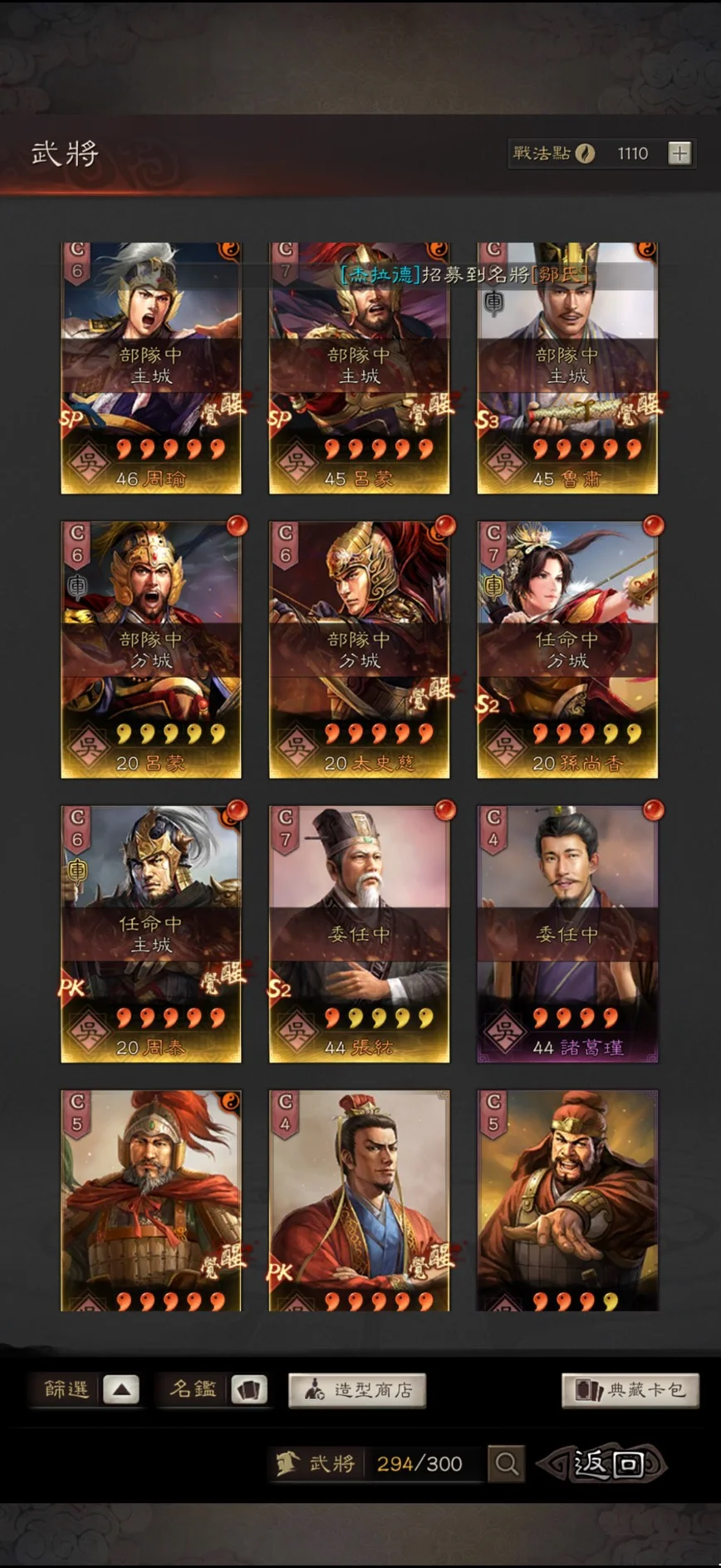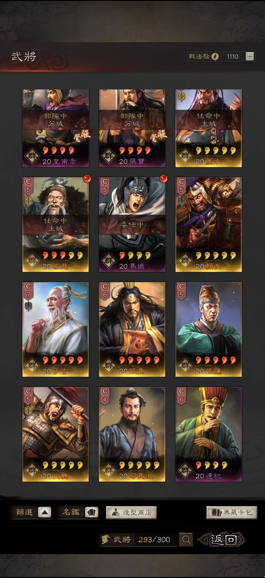 太尉:曹操沒滿沒動態,其餘均典藏滿紅動態