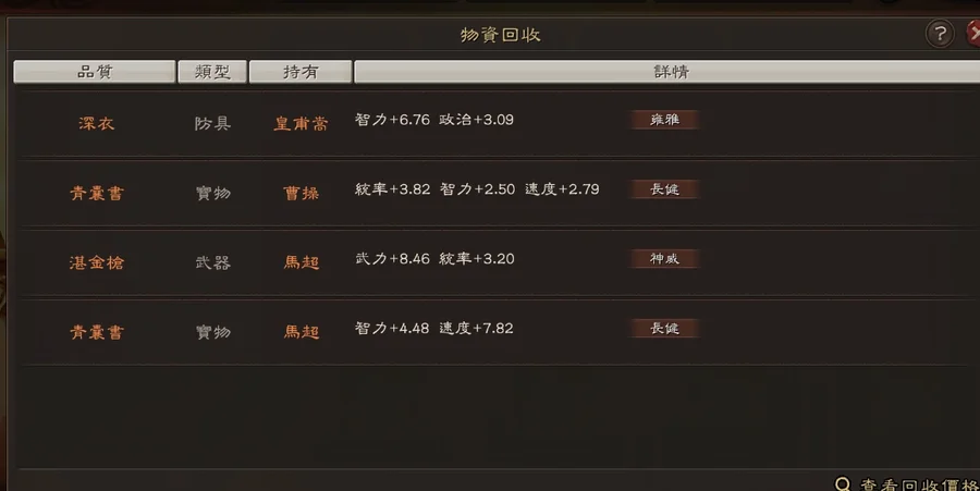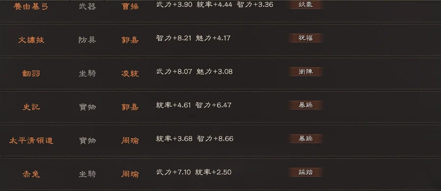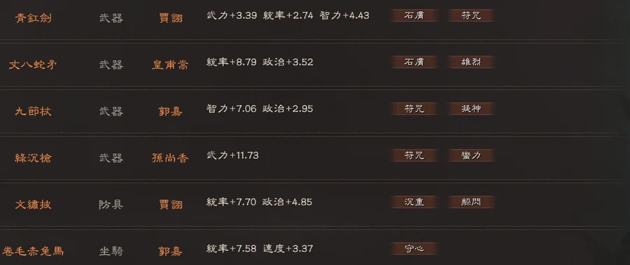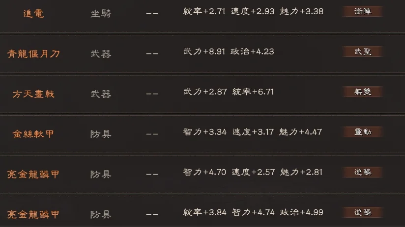 裝備:雙特 5件 專武 雄烈(雙特) 赳螑 號令 神威 雍雅 暴躁*2 踩踏*5 出奇*2 長健*2 靈動*3 還有大量的符咒 妖氣 等裝備