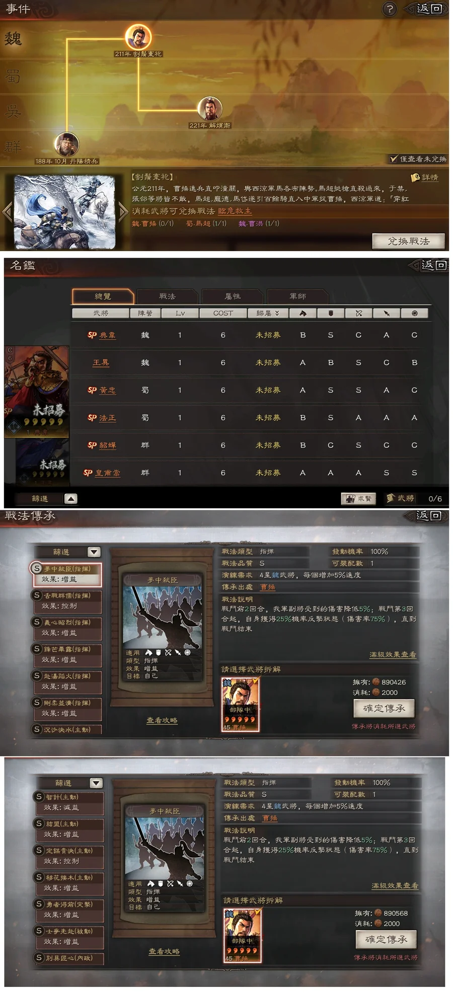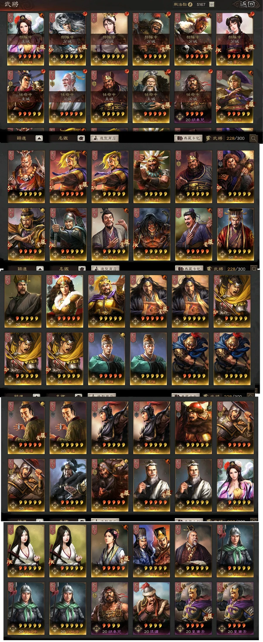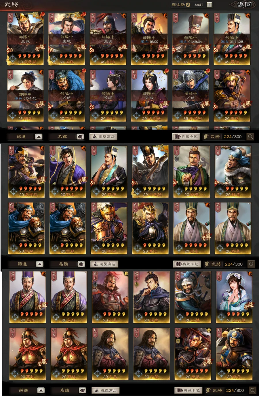 典藏角色:司馬懿,呂蒙,凌統,曹操,SP諸葛亮,呂布,張遼,馬超,關羽,孫尚香,夏侯惇,姜維,張飛,太史慈,SP朱儁,郭嘉,木鹿大王,黃月英