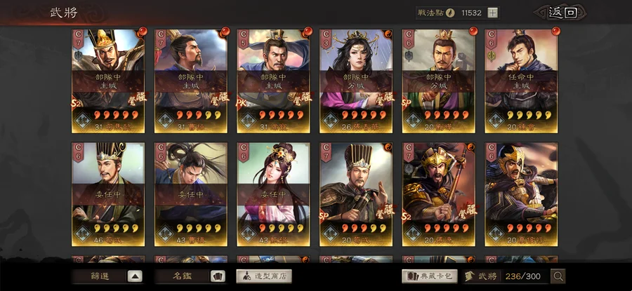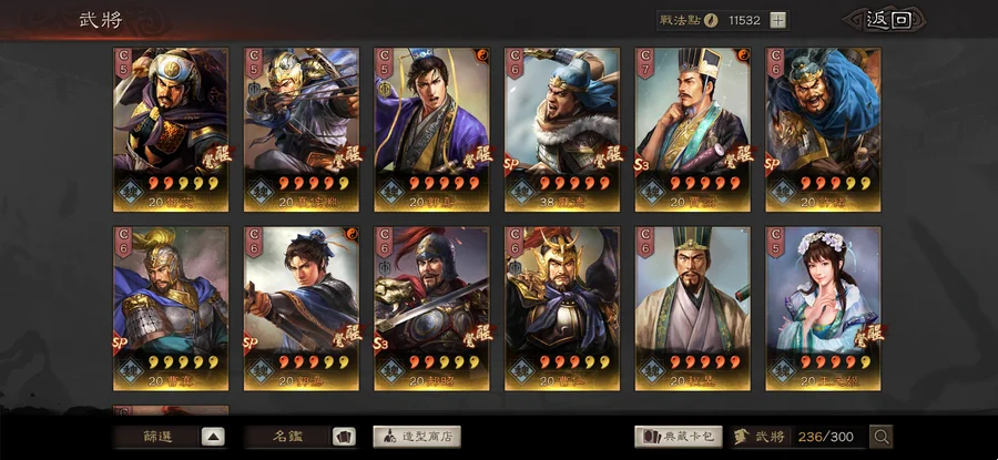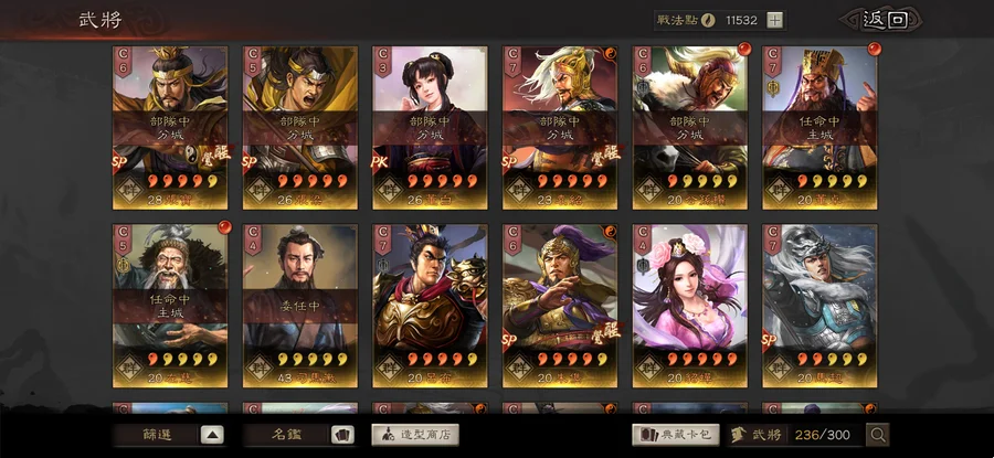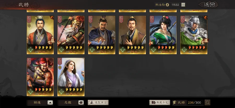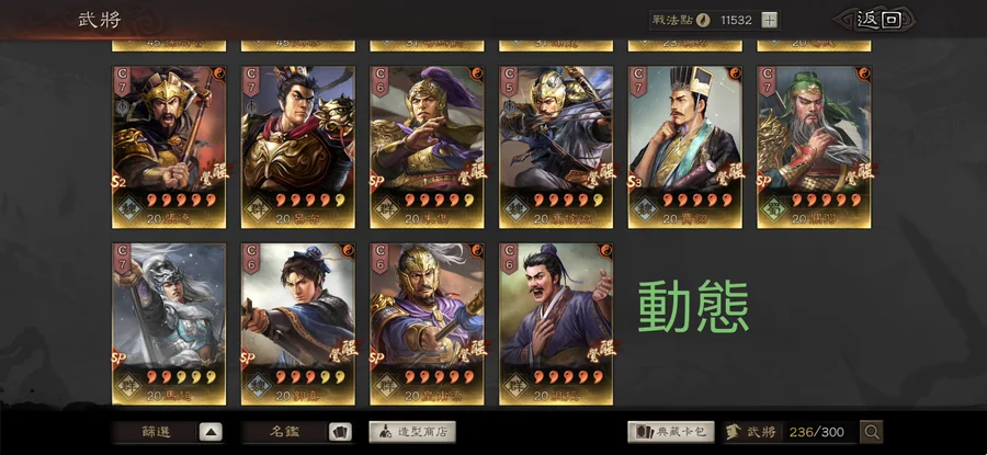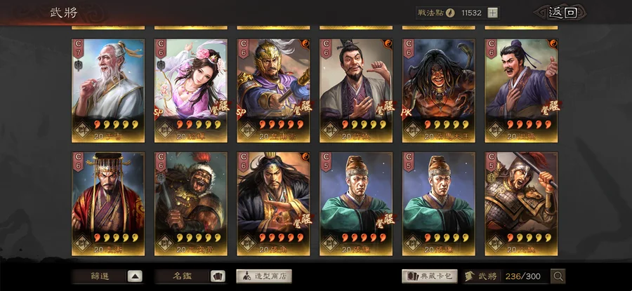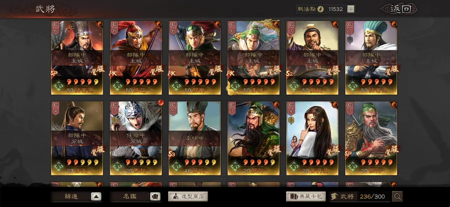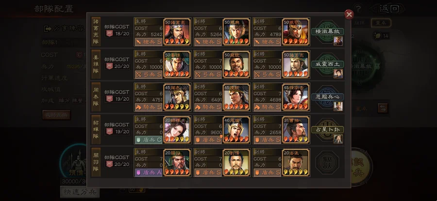 裝備:昭烈符咒雙特技 神算 明略 獧甲 靈動x8 援助x2 踩踏x4 衝陣x1 出奇 號令 虎峙 龍驤 武聖x2 天公 樂奏 興師 妖氣x2 剛體x2 暴躁 好學x2