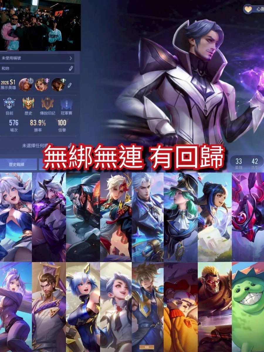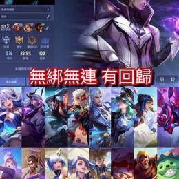 【Garena帳無綁無連、先鋒傳說·光影、V4、33英、42造】無綁無連 真理 星際 深淵 合金 9週年 紫苑 高勝