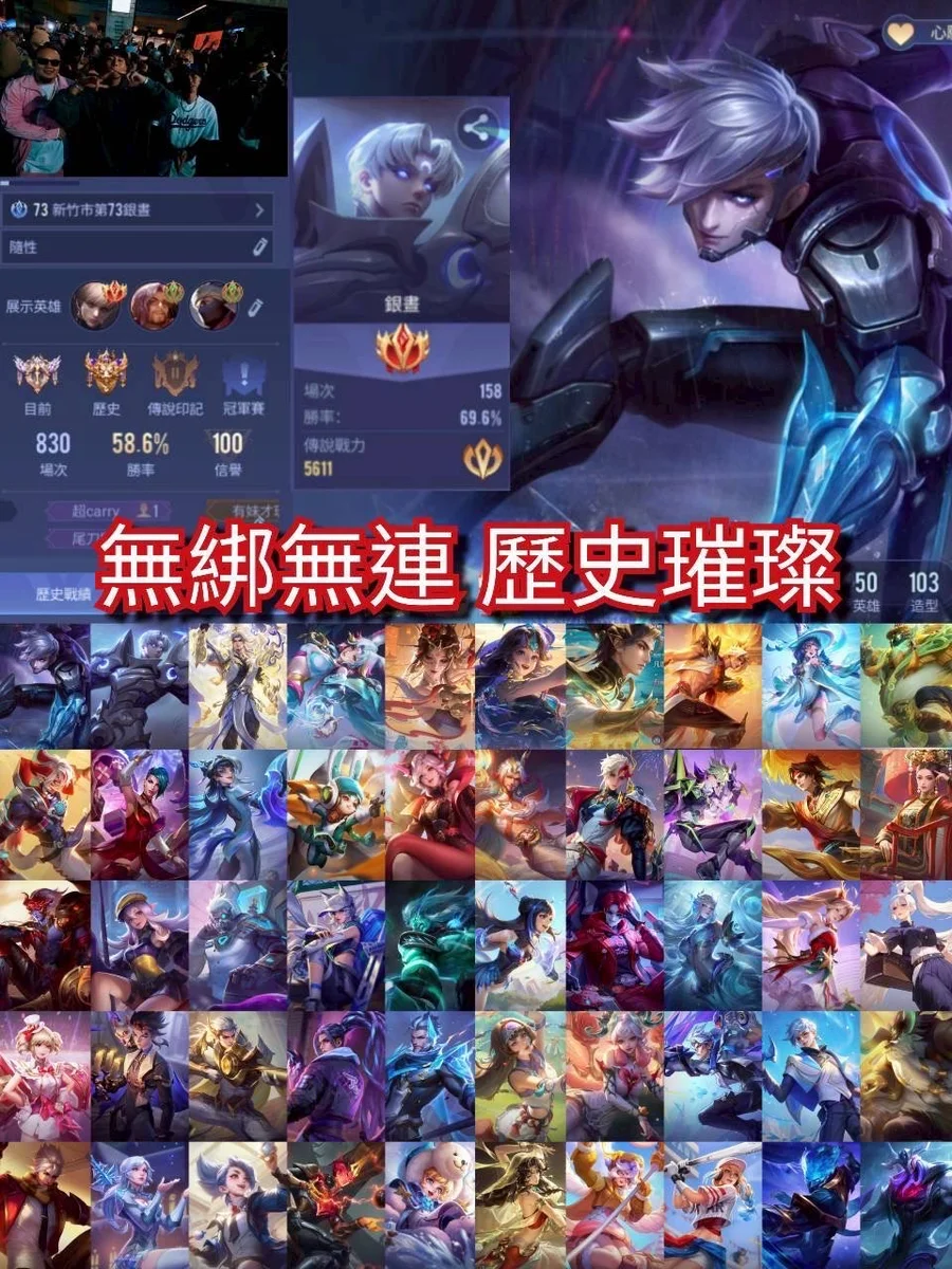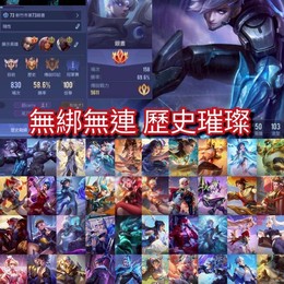 【Garena帳無綁無連、璀璨傳說、V8、50英、103造】無無 歷史璀璨 朔月 新年 礦能 窺海 禧妃 動物 異星 海洋 罷天銀咒