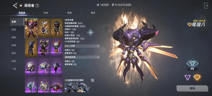 身上綁定有 +10紫推 +9星空 T3+10耳環 T3+10上身 T3+8手臂
