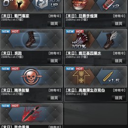 商城送禮 殭屍英雄經典 末日 戰鬥 狂暴 疾跑 基因 精準 背心 致命重傷 末日