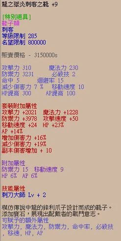 刺客龍防一套 (卡屬)