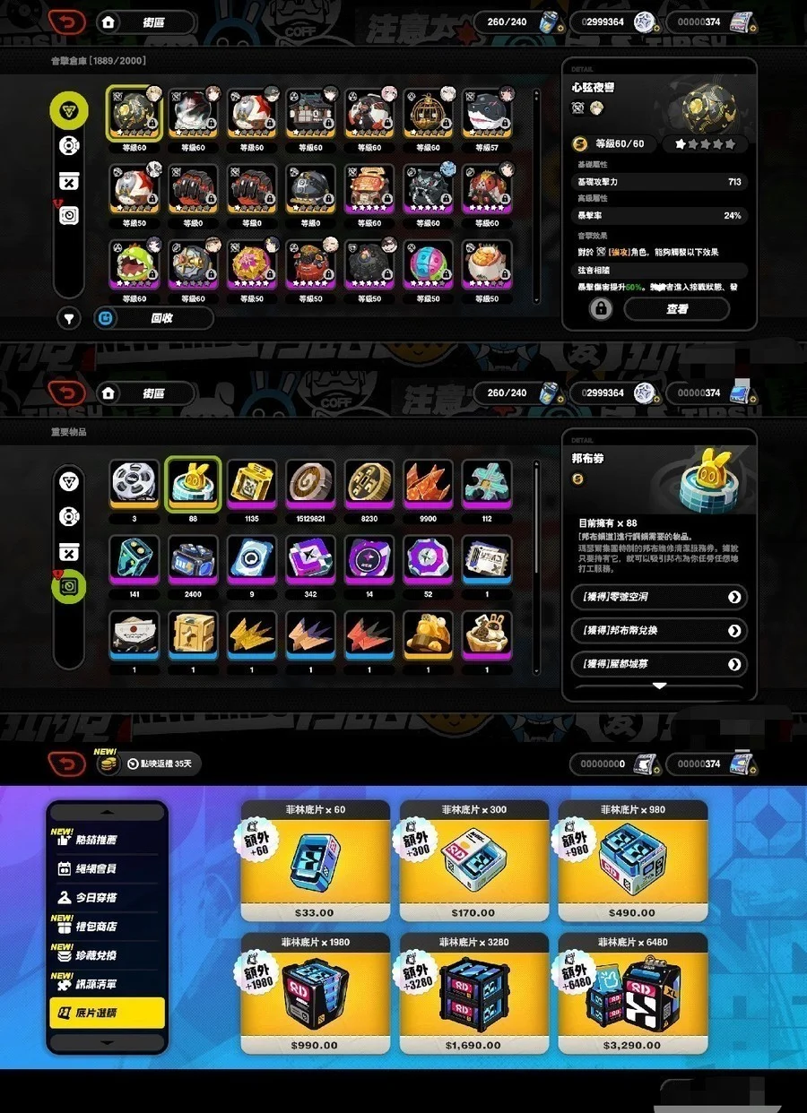 售出前會持續遊玩,主要角色有練度,其餘角色練度可看圖。