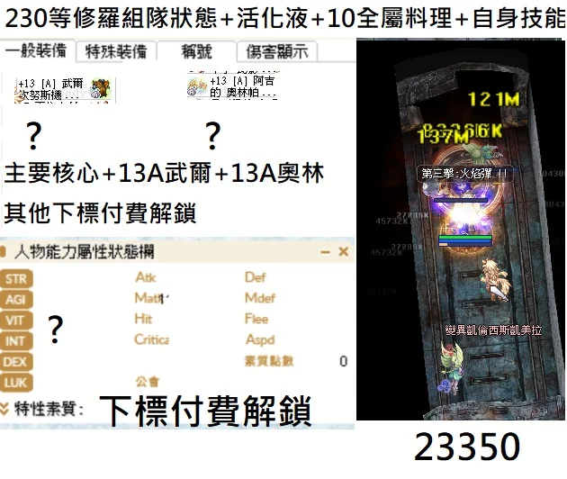 修羅130-260練功傷害表 有不懂歡迎詢問喔