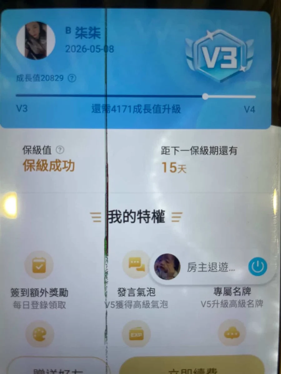 會員V3期限到今年5月 修仙天賦1110 遊玩卡沒買