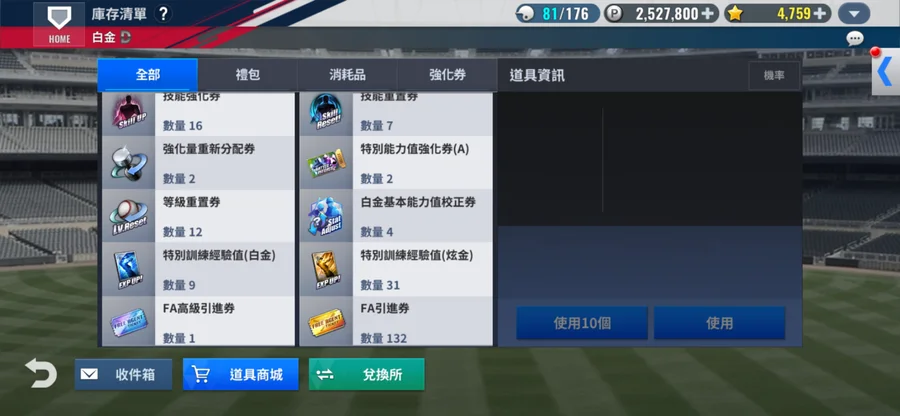 信箱密碼可更改 進度成就0 角色能擺的都擺上去了 ,資源如圖 ,有3張升級白金卷上白金 ,有問題及需求都可以來訊