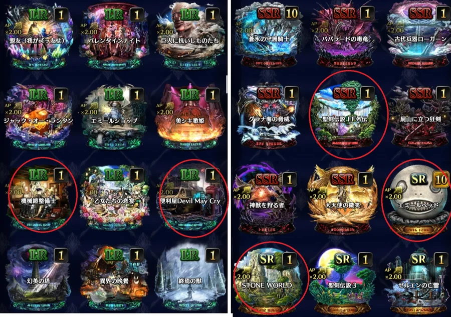 聖物普池SSR都有~~重要的有LR電話亭(紫魂石)、SSR外傳(聖靈藥),SR石之世界