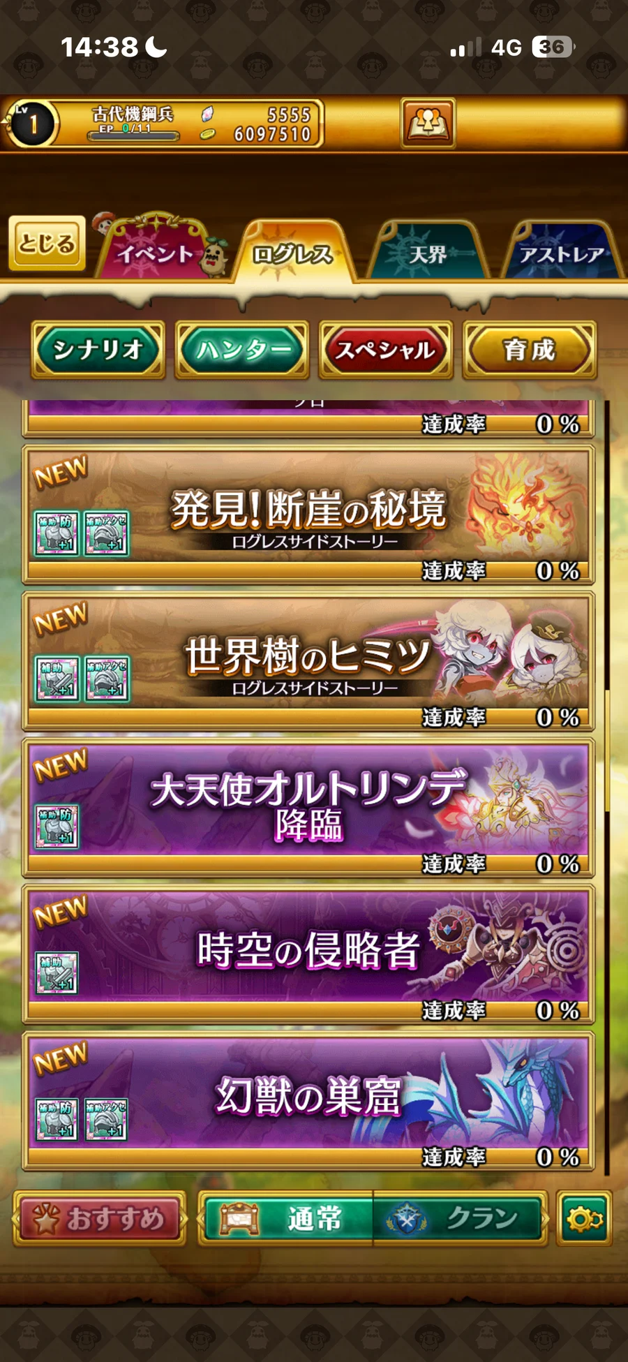 日服進度如圖所示(支線獵人世界樹發見斷崖之秘境也都還沒解)
