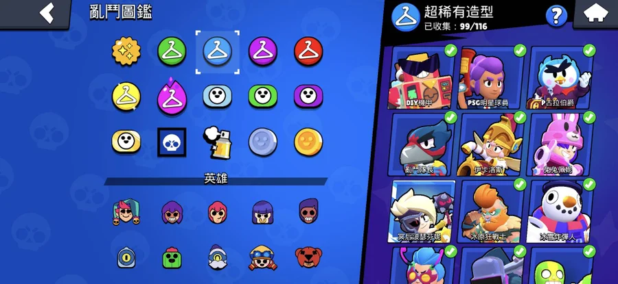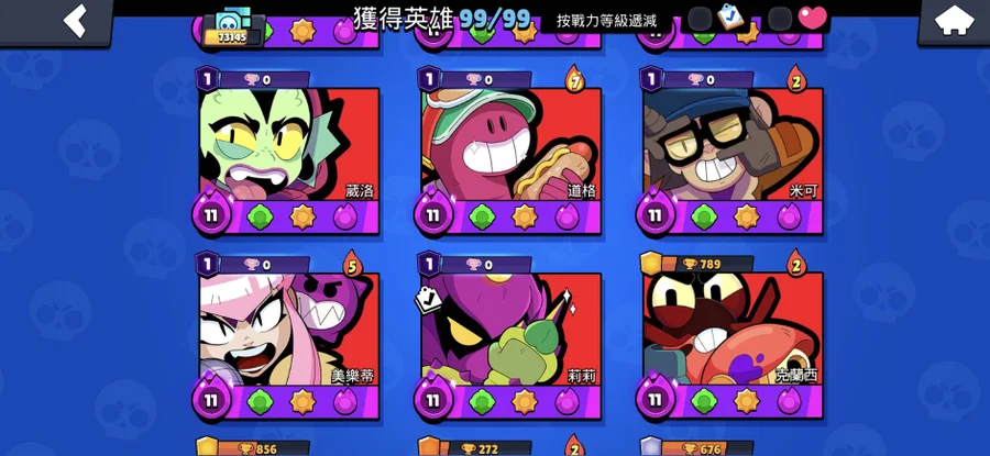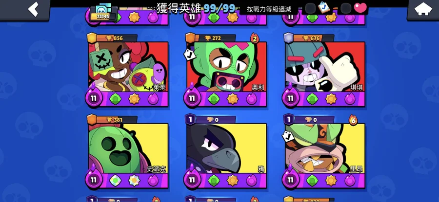全部英雄都有、威能多、吊飾多、資源多|滿等英雄多,大部分角色都9~11等|能力之星、武裝配件、強化ˊ裝置多,角色配置完整度高,排位賽不怕沒角色