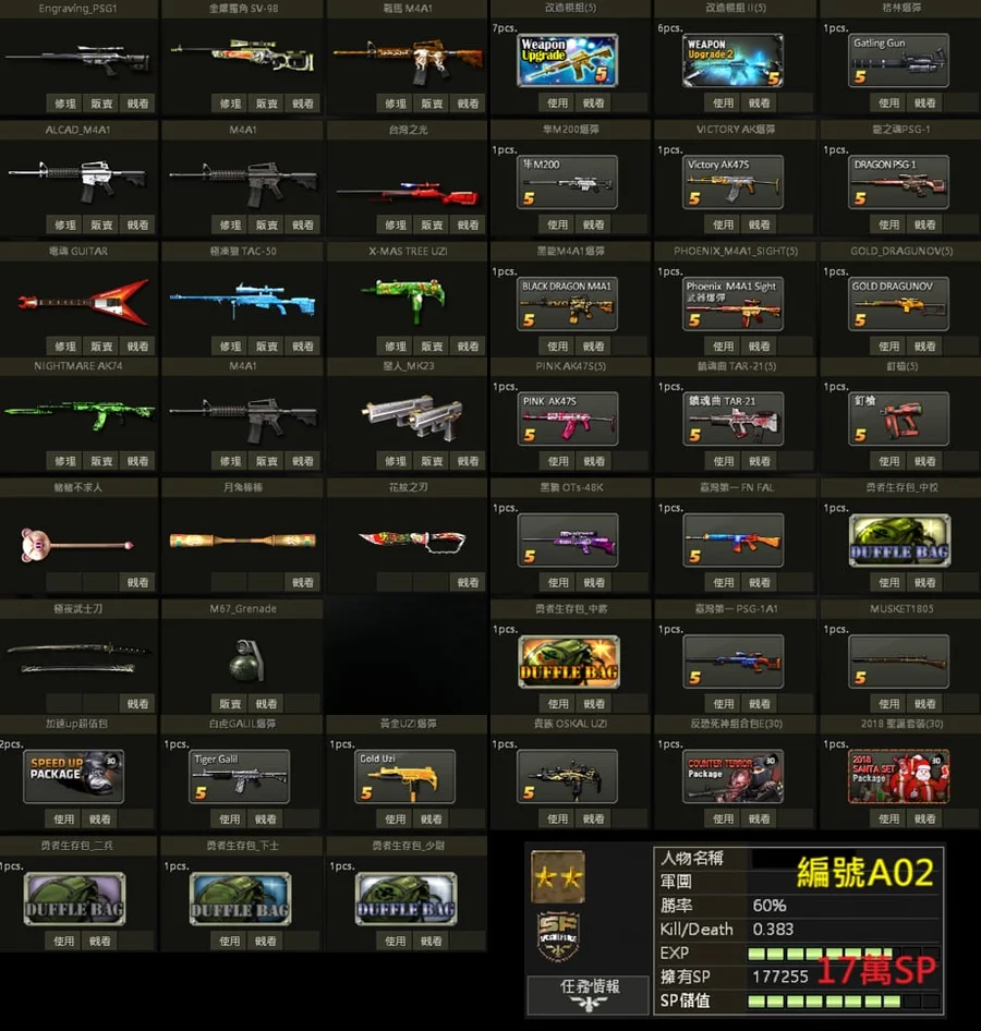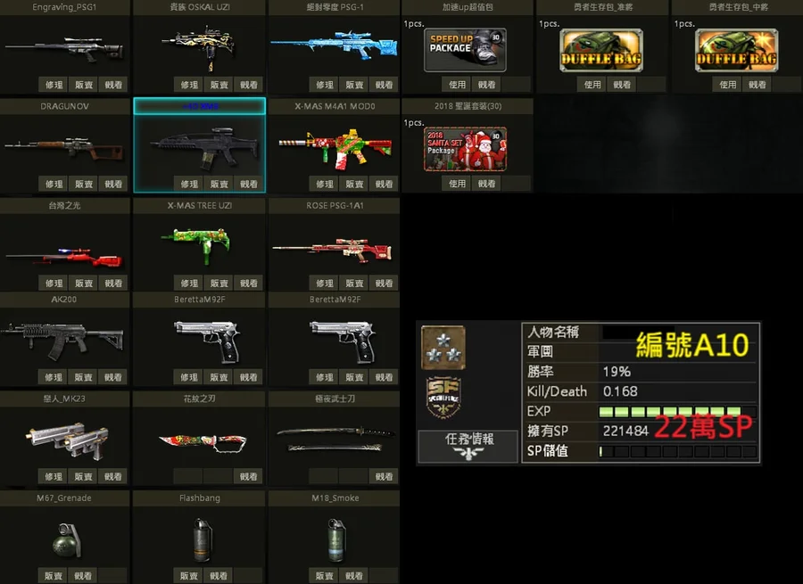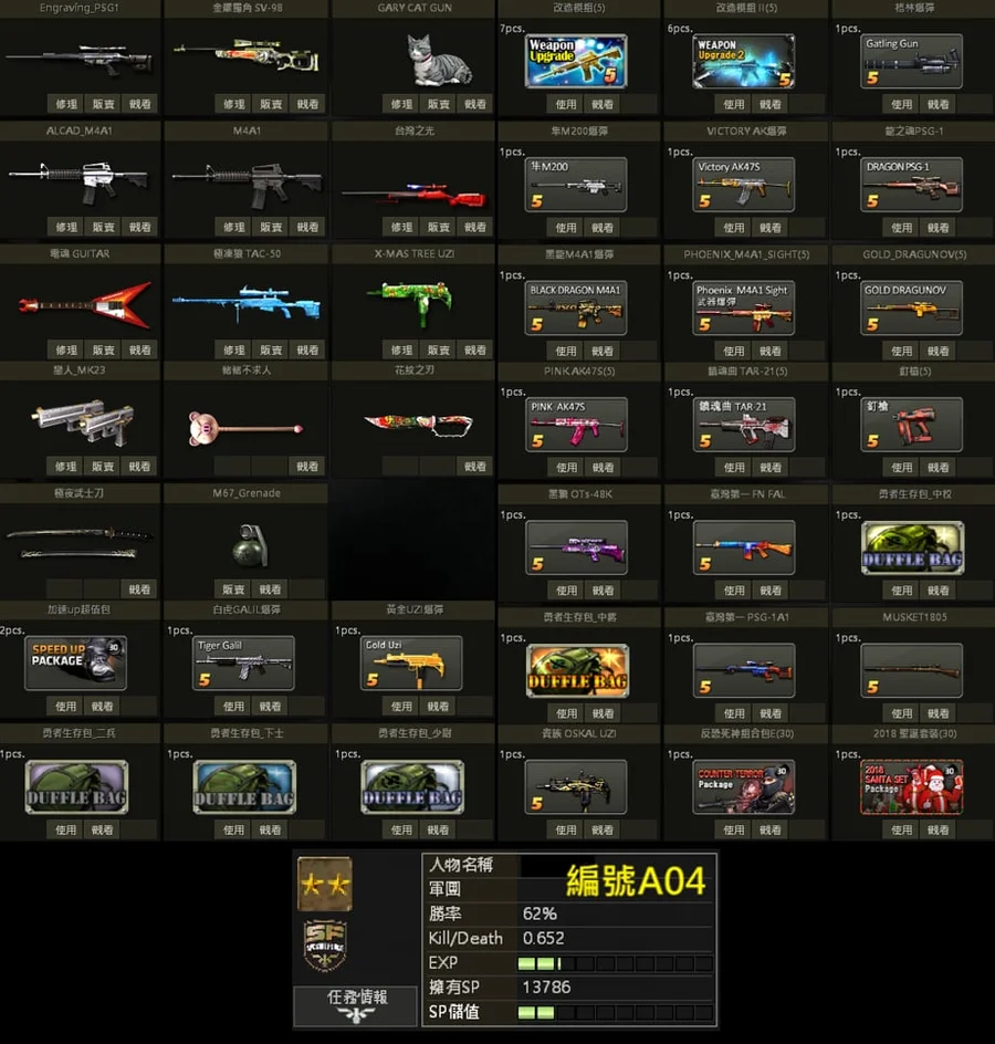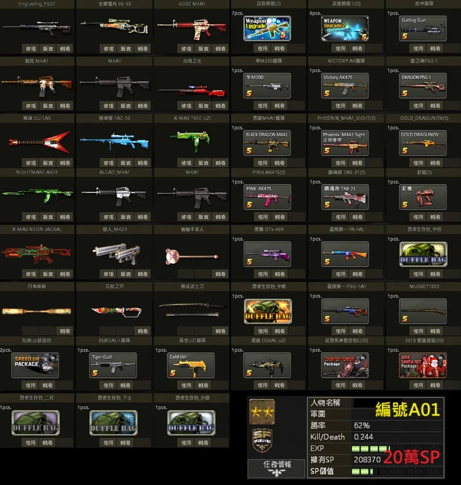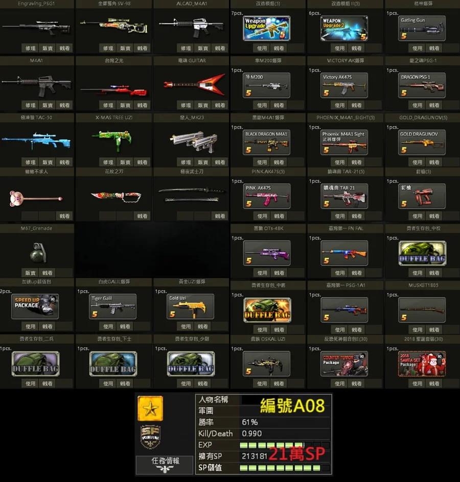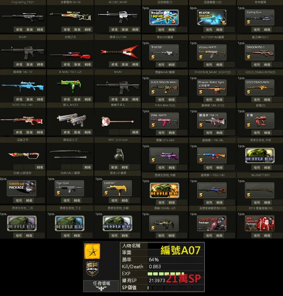 白金PSG、獨角SV、白金M4、急凍狼TAC
