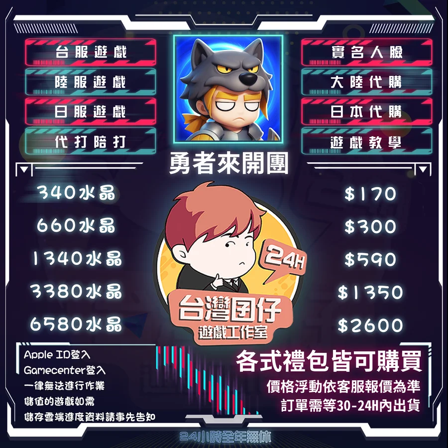 6️台灣囝仔台陸手遊代儲純粹為協助代儲服務,僅收取服務費,無賺取額外差價。