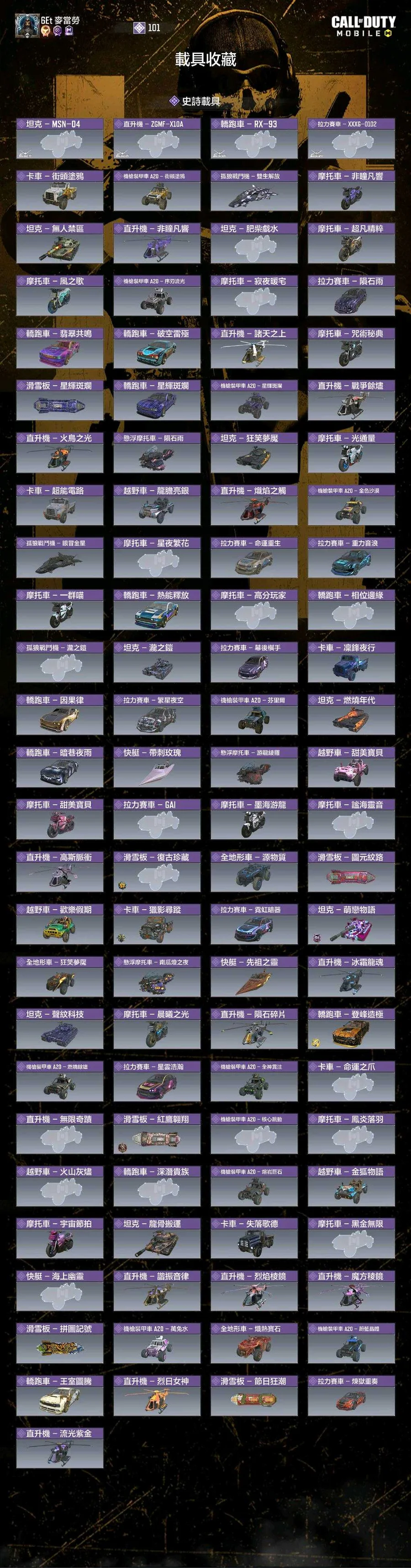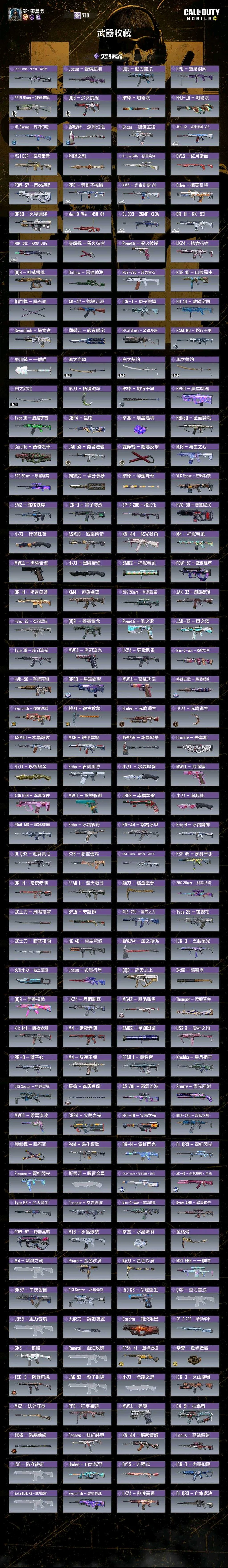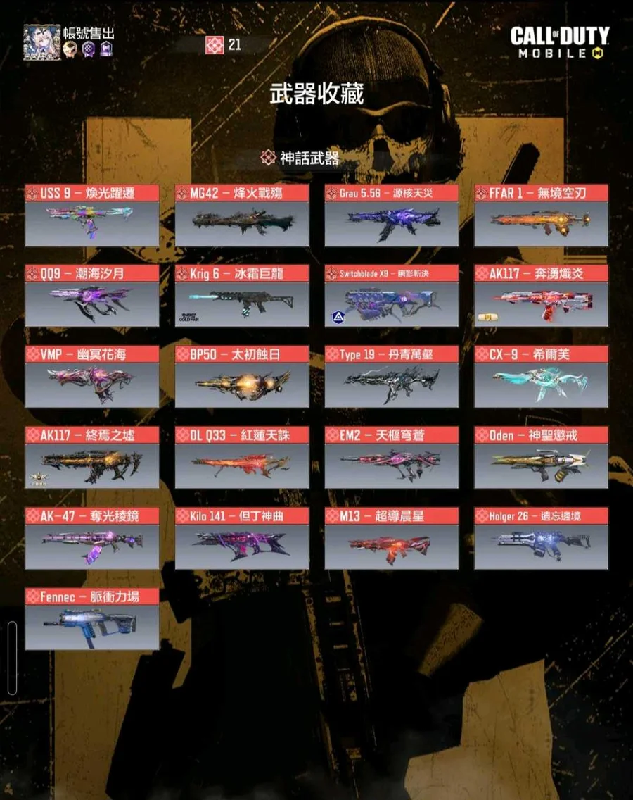 【Garena帳】21🌹7🈵50🍊槍,1🌹🈵3🍊角,多熱門神話槍, 幽魂、冰龍、墨龍、鋼彈角色等。