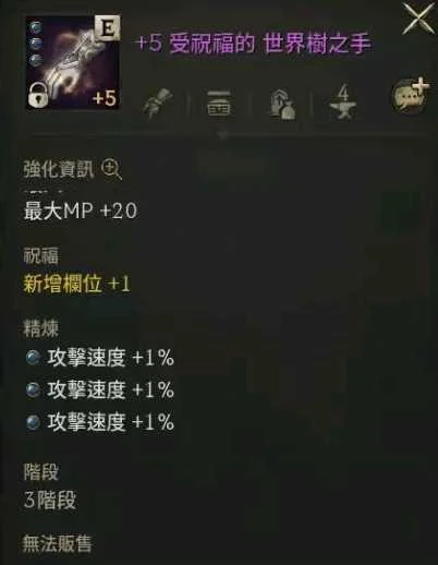 +5受祝福三階世界樹手套 攻速1% 攻速1% 攻速1% 6500T
