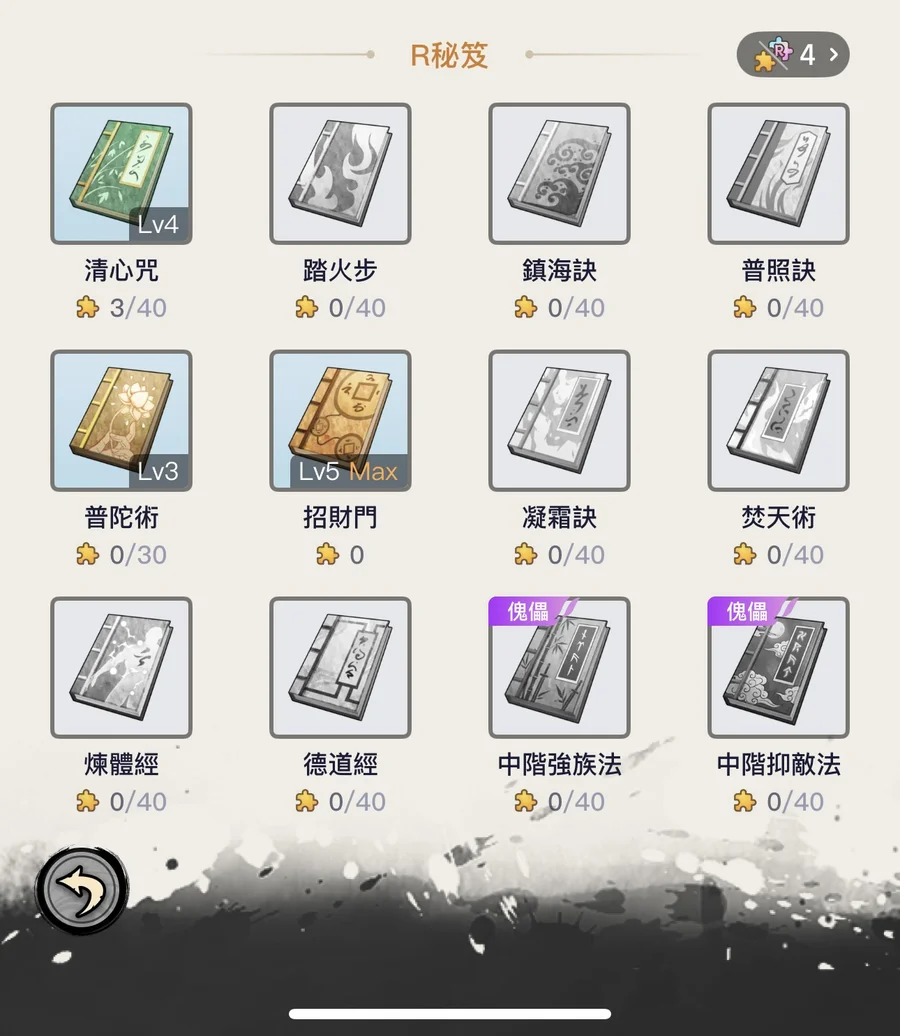 等級四:幽玄、自在、大象、清心、天書、水書、火書(其他自己看圖)