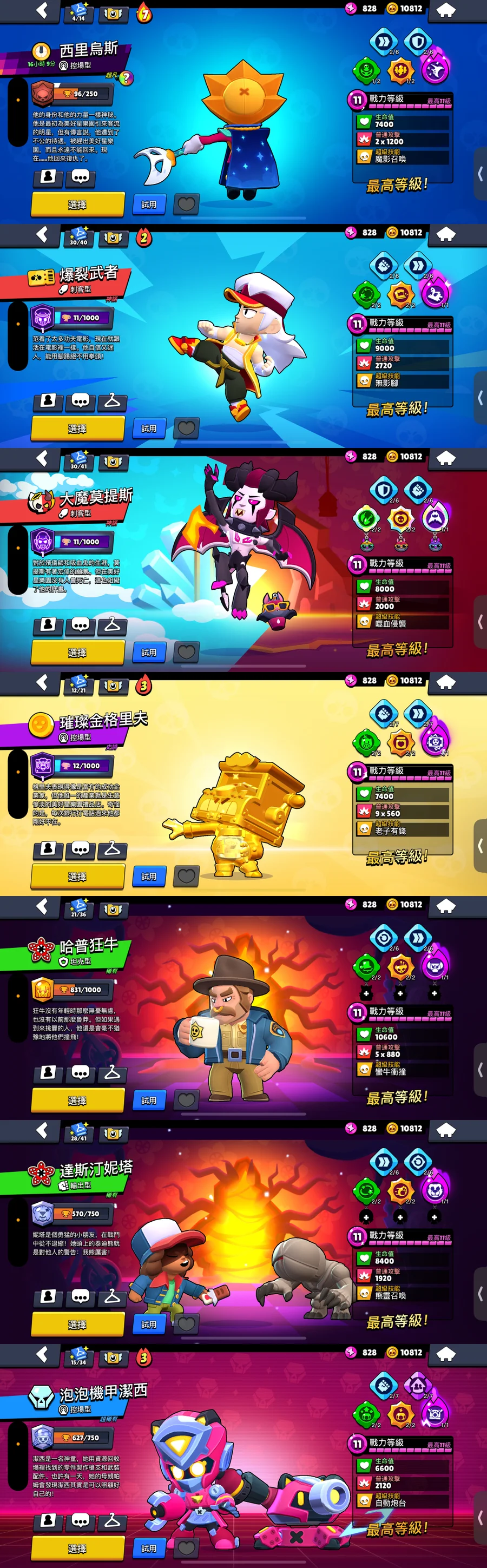 哥吉拉、墮天使艾德加、大魔莫提斯、打蝶高手、漫畫賢治、達斯汀妮塔、冰霜女皇、機甲莫提斯、泡泡機甲潔西、海盜旗子、南瓜神腿、哈普狂牛、永恆夢魘、爆裂武者