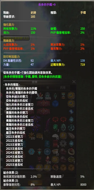 經驗護符V180+9DK手套召喚健康一顆4周年徽章+4狂氣1051顆憤怒39顆