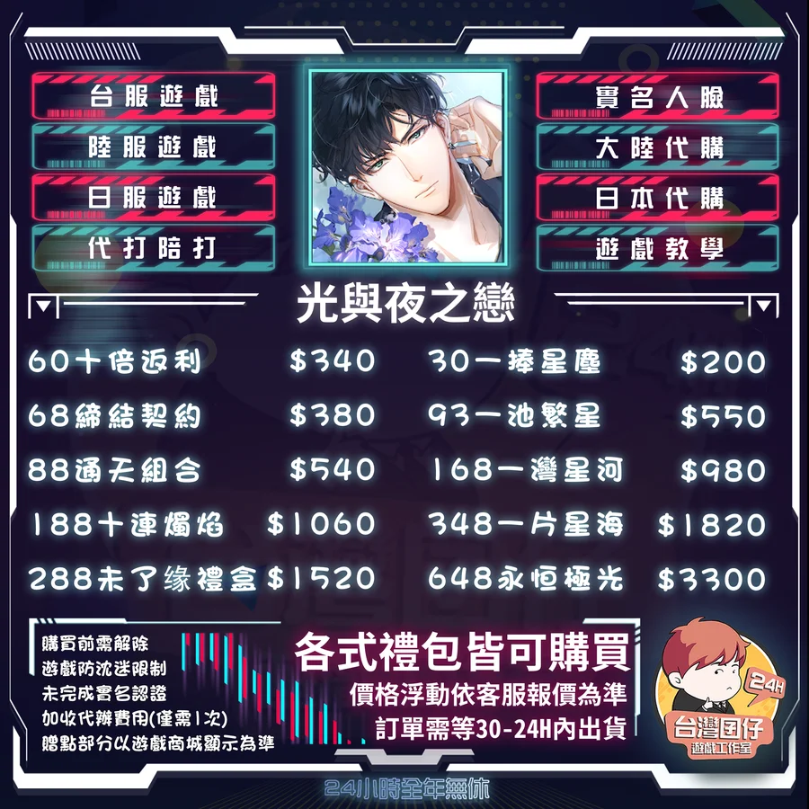 【30一捧星塵】🔥光與夜之戀陸服🏆24H客服🏆現貨秒出🔥台灣囝仔