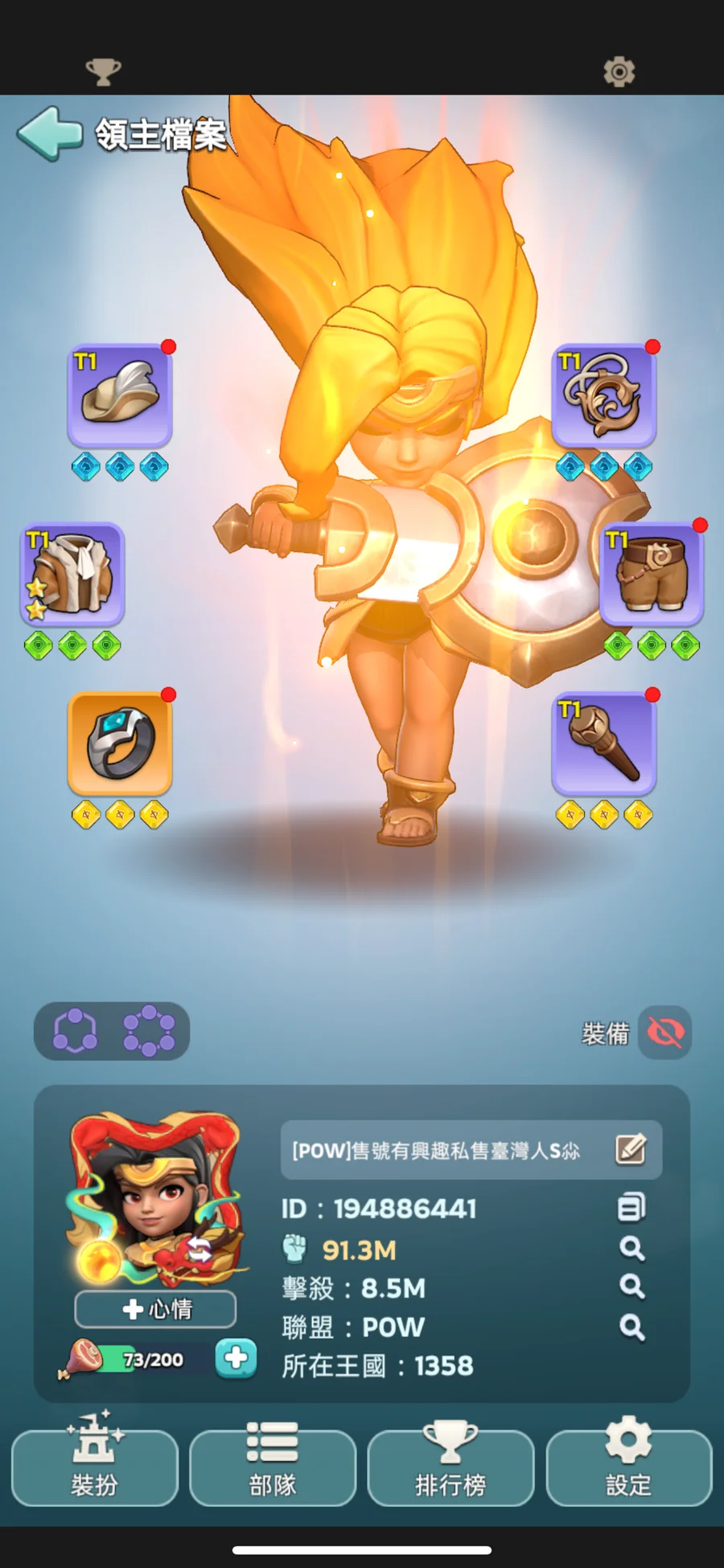 急售 不議價 已花費10幾萬 目前戰力1億多 排名前10