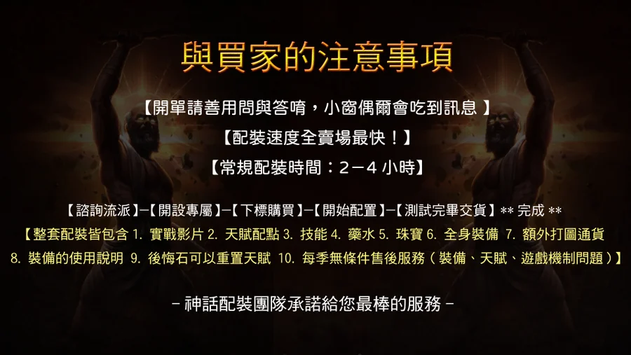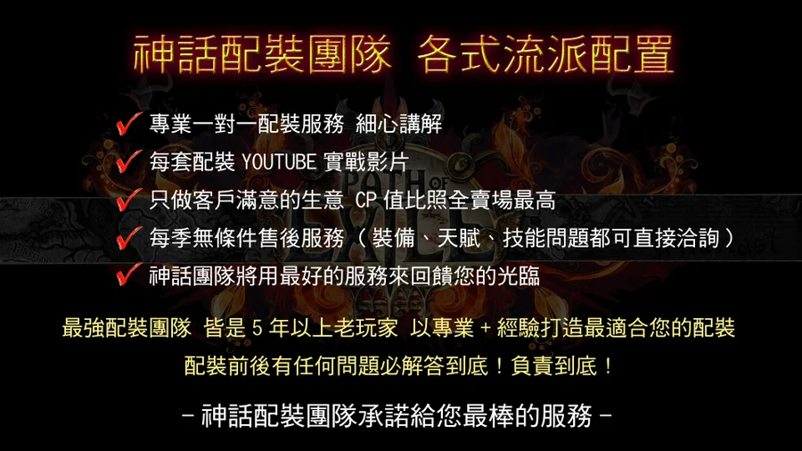 👉【整套配裝皆包含1.實戰影片2.天賦配點3.技能4.藥水5.珠寶6.全身裝備 7.額外打圖通貨8.裝備的使用說明9.後悔石可以重置天賦 10.每季無條件售後服務(裝備天賦 遊戲機制問題)】