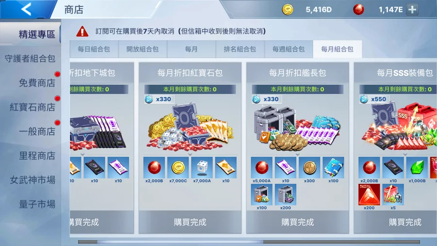 2000萬鑽 + 去廣告兩倍速禮包 + 月卡包全買(共5款月卡) + 排名組合包全買 + 每月組合包全買 = 500