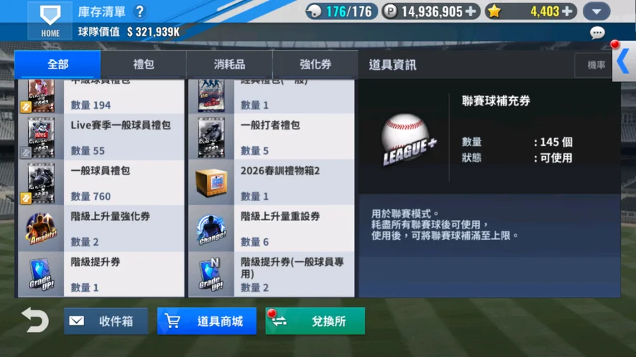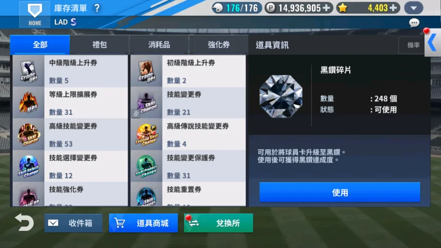 資源如圖 成就 球選簽.升階 已使用