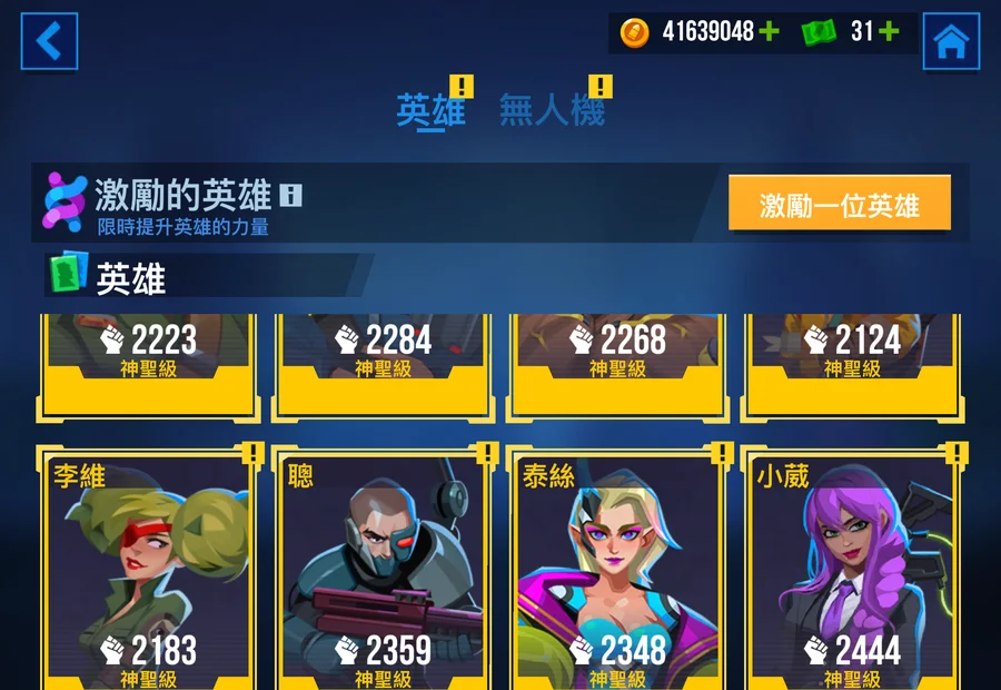 有幾隻角色卡不朽等級 可自行升級神聖