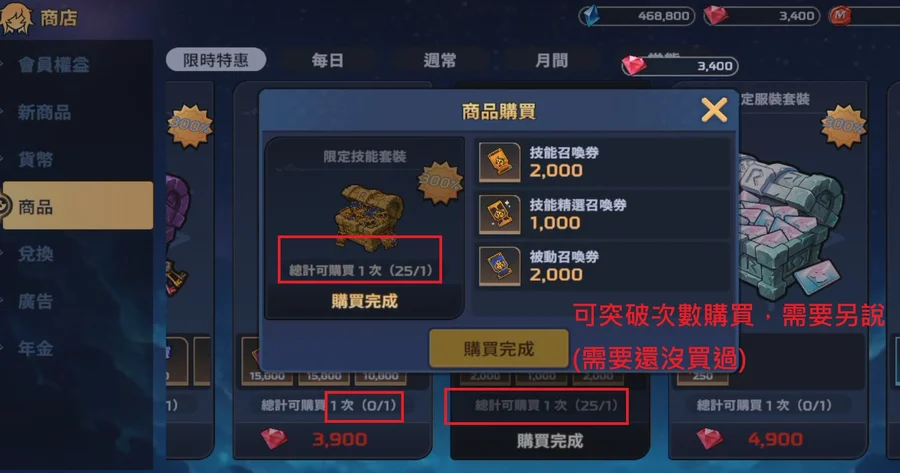 突破次數購買(看需要哪種,cp最高的禮包,只要紅鑽夠,需要另談)