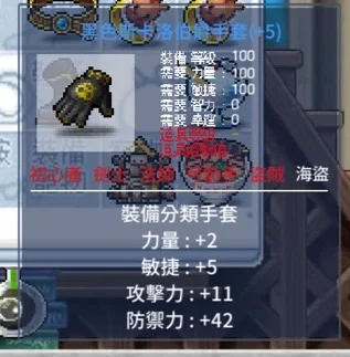 手套2力5敏11攻/工地手套10敏17命