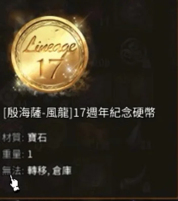 內含不可轉移道具:+6傲龍肩甲(刻印)送你、+6傲龍脛甲(刻印)送你、17週年硬幣*2(循環)、17週年闇龍硬幣*1、絕版龍之力潛龍封印*1、+9體力加護(要花不少台幣製作)、祝福戰場的加護(防禦+2 HP+150)!