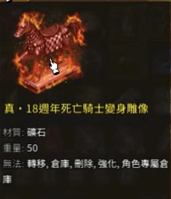 內含不可轉移道具:+6傲龍肩甲(刻印)送你、+6傲龍脛甲(刻印)送你、17週年硬幣*2(循環)、17週年闇龍硬幣*3(循環)、絕版龍之力潛龍封印*2(循環)、傲塔幻象符(可在傲塔隨意飛)(製作要噴不少台幣也送你)、真18週年死亡騎士變身雕像(單顆循環)、+9體力加護(要花不少台幣製作)、祝福戰場的加護(防禦+2 HP+150)!