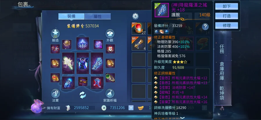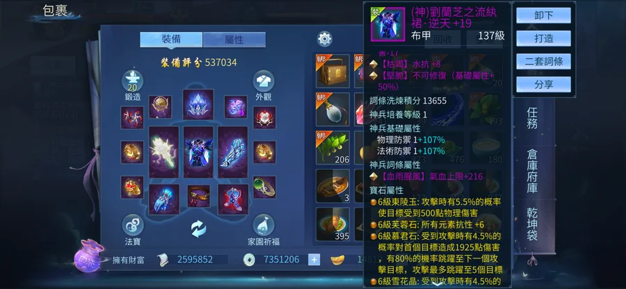 武器+20六級寶石,衣服六級逆天不修,護腕四大幅四級寶石,鍛造20套