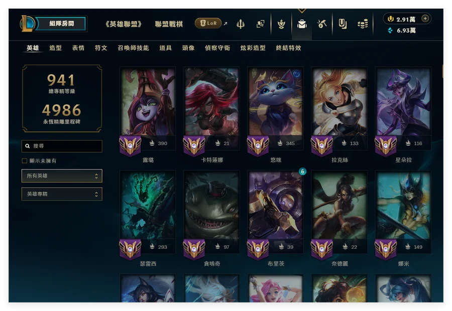 ❤️[滿造型]❤️-高牌位滿造型多晶球多稀有表情棋手聯盟幣輔助專精號