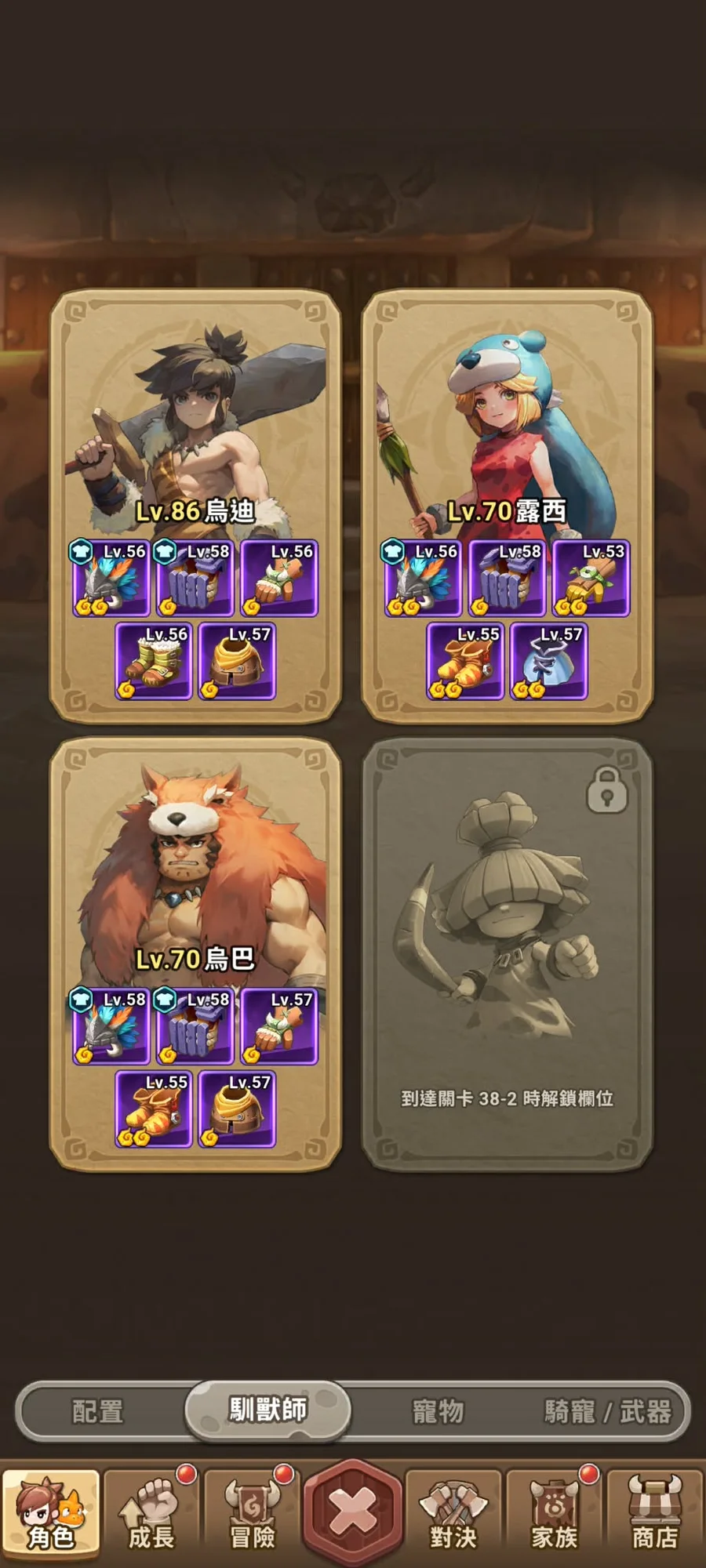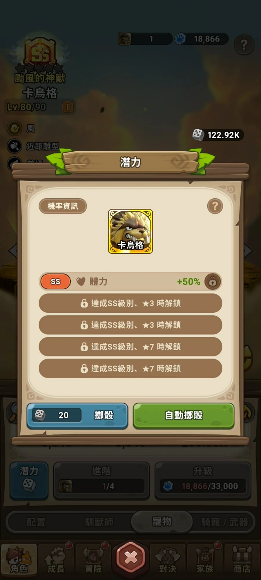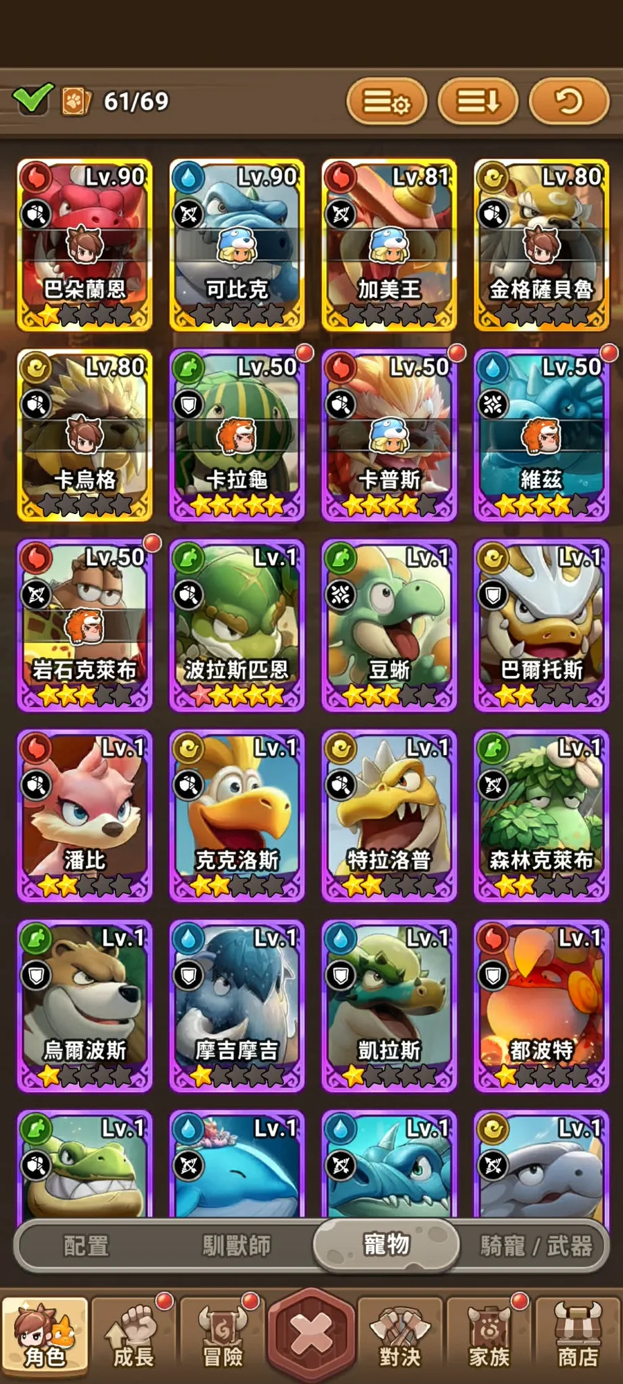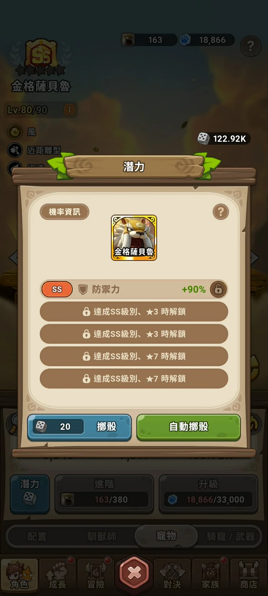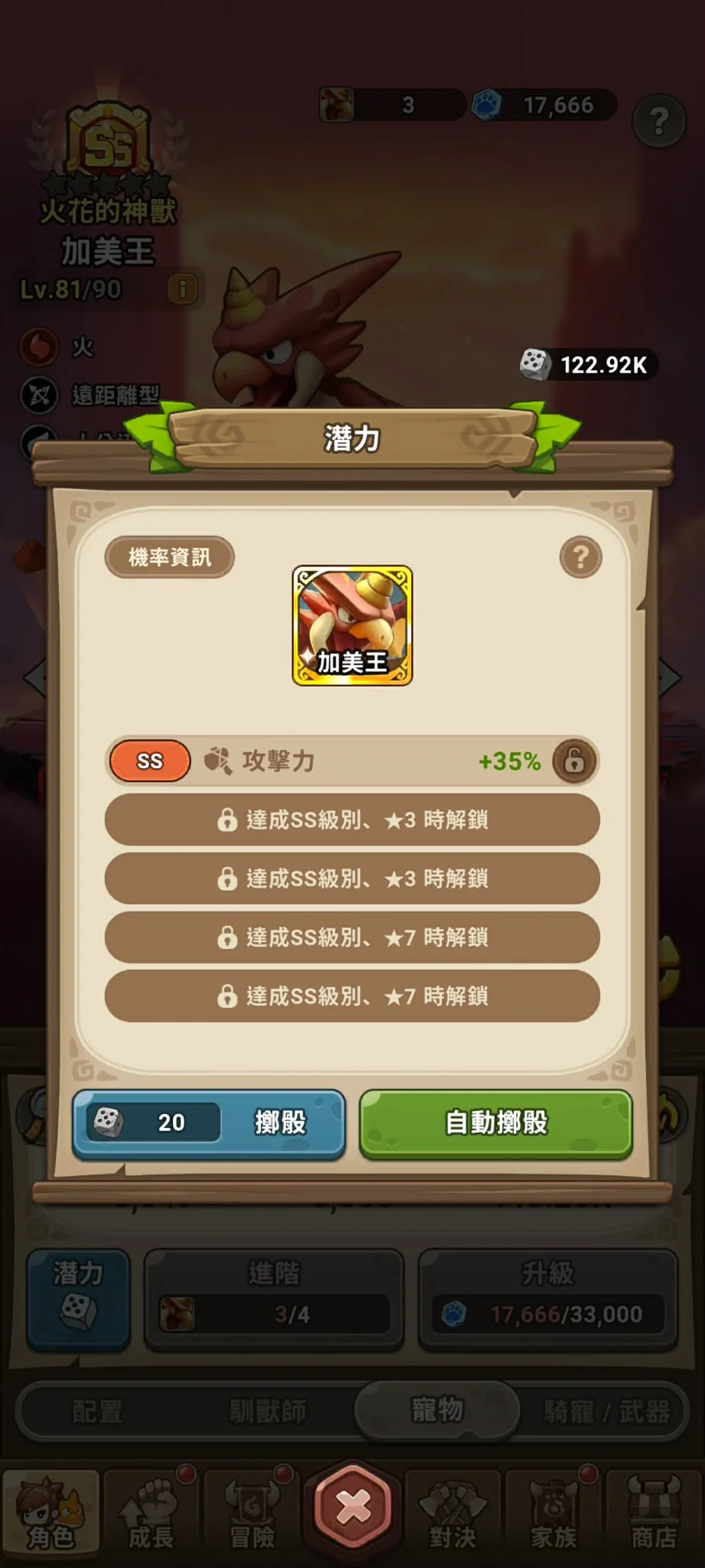 SS巴朵蘭恩1星、SS卡烏格(1/4)、SS可比克(3/4)、SS加美王(3/4)、金格