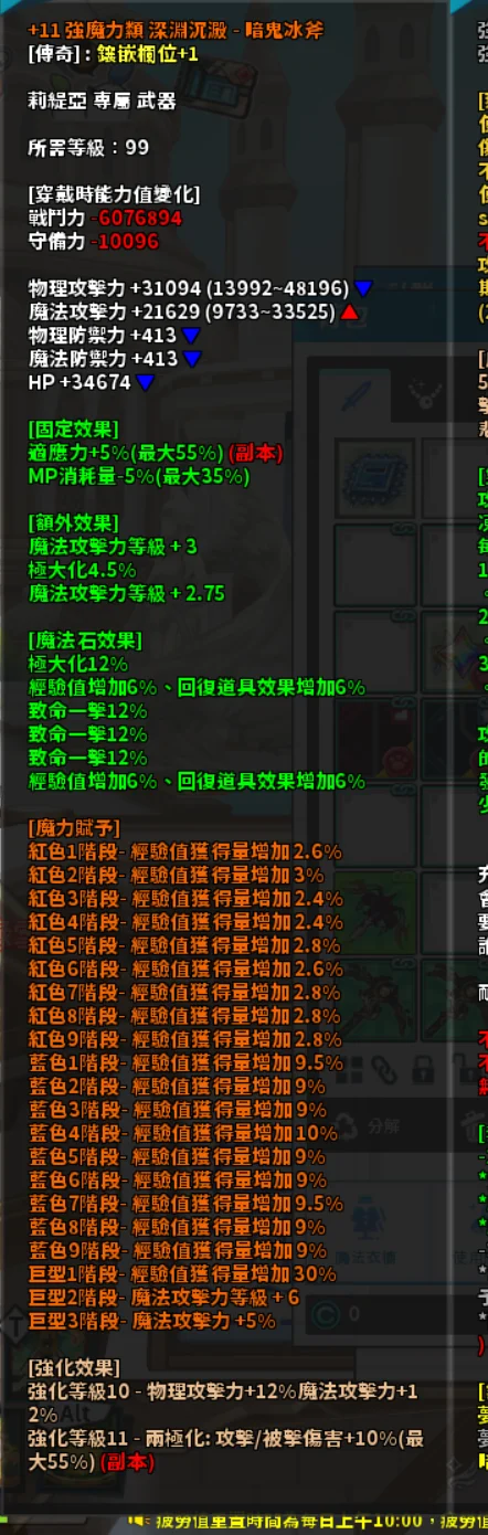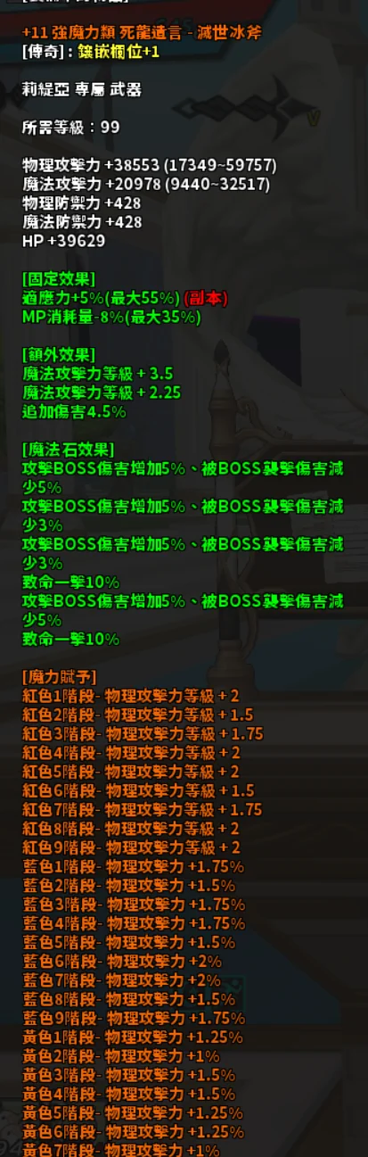 /+11 死龍遺言 成長1 /+11暗鬼 已轉經驗武用