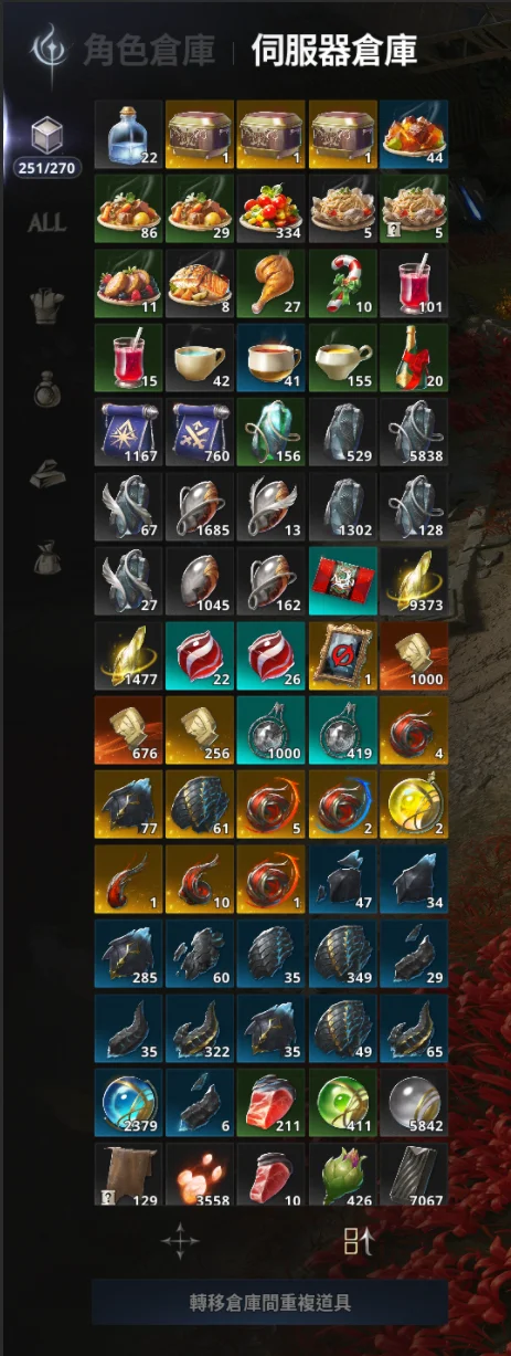 倉庫內資源很多 倉庫和背包開滿