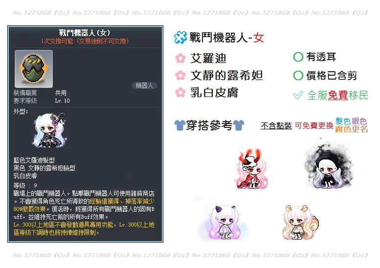 🌸賣家方便交易之時段🌸🕖工作日19:00~22:00🕙🕘例假日09:00~23:00🕚🔥此單=【艾羅迪+文靜的露希妲】透耳戰女☑ 此物價格已包含剪刀☑ 有透耳,點裝僅供參考☑ 免費幫換髮色、眼色☑ 免費幫換膚色、更名☑ 全伺服器免費幫移民☑ 商品剩餘數量=庫存量✦此單可直接下標購買✦✦交易地點25頻自由✦💎 查看賣家更多商品 ➽ No.1271868《Qz》