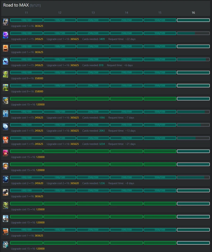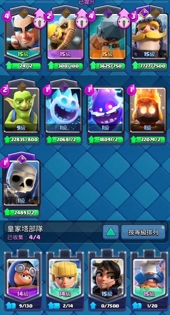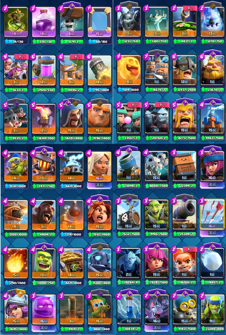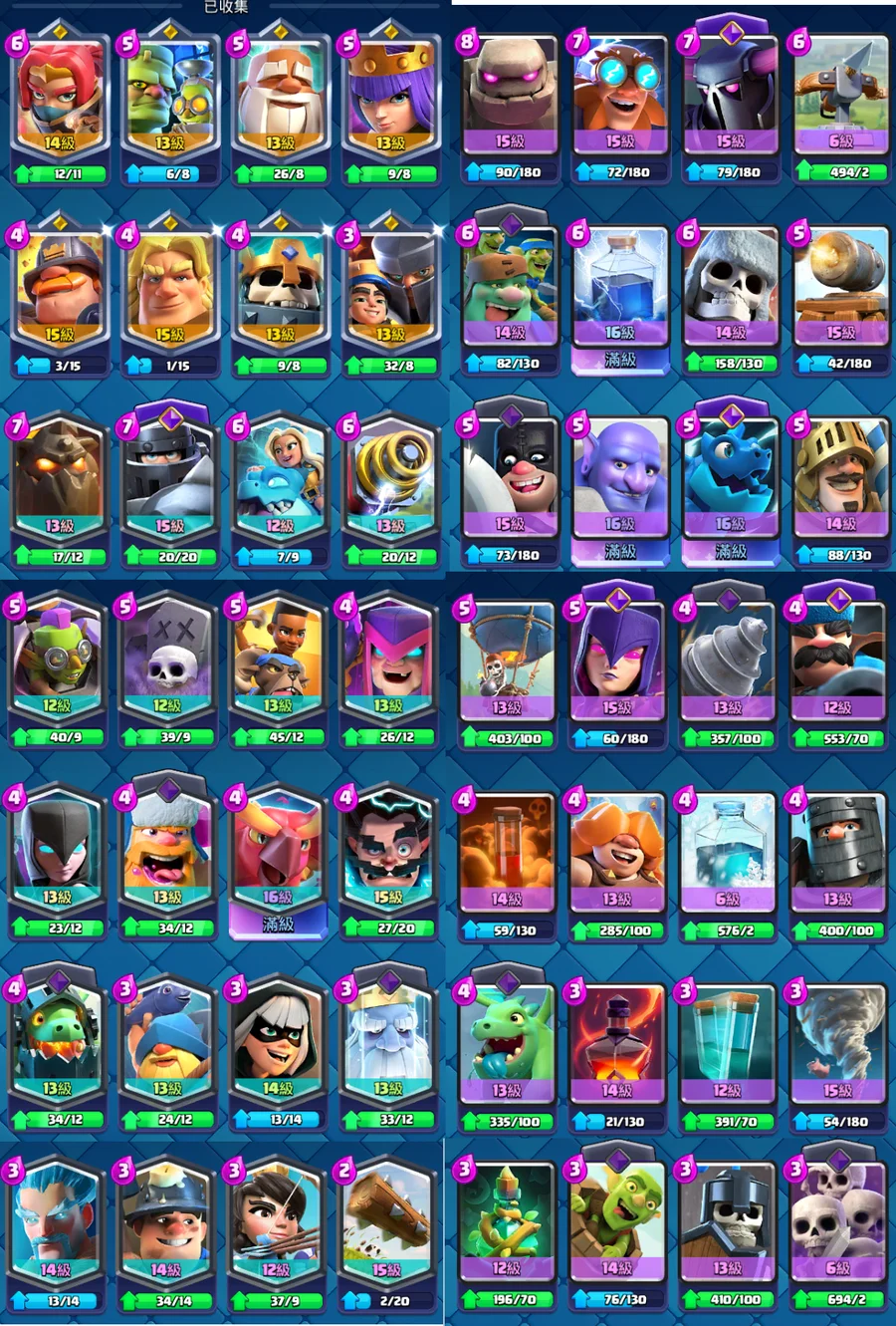 15等國王塔,卡片近乎都滿15等,些許16等,請參考圖片