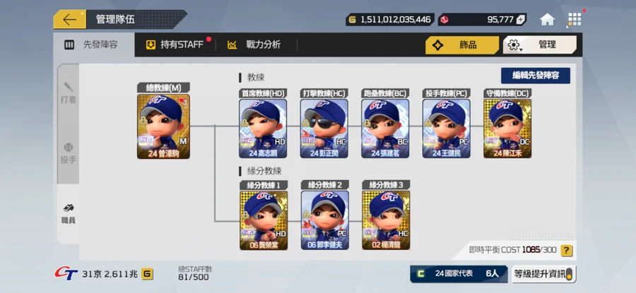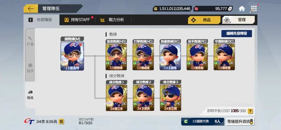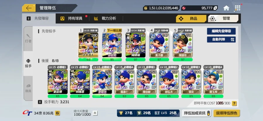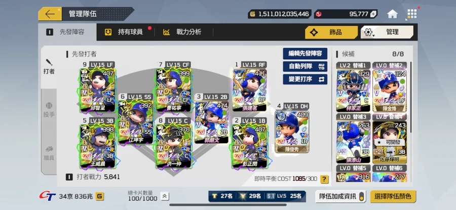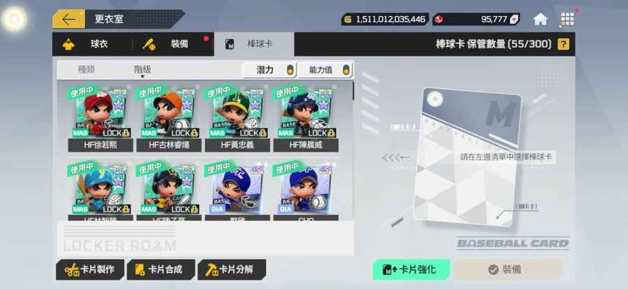 先發位置全強化+15 棒球卡滿