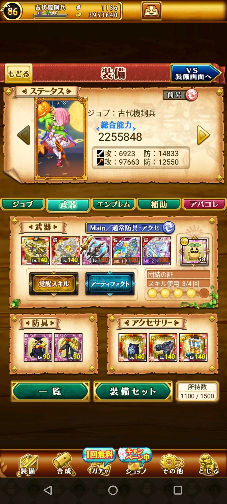 【80等】日14女角古代,1100石,斑鳩,南瓜狗,衝浪板,蛋糕熊,王權
