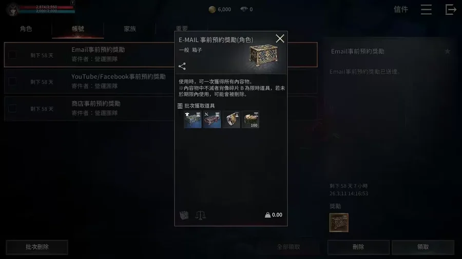 進入遊戲後在郵件功能领取