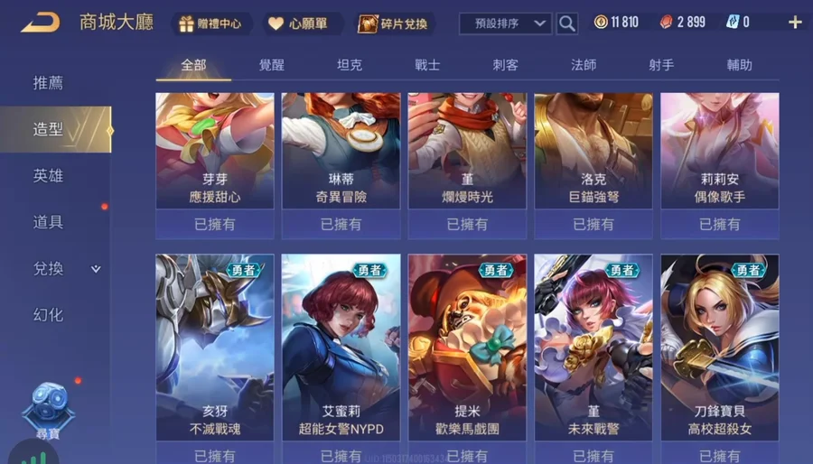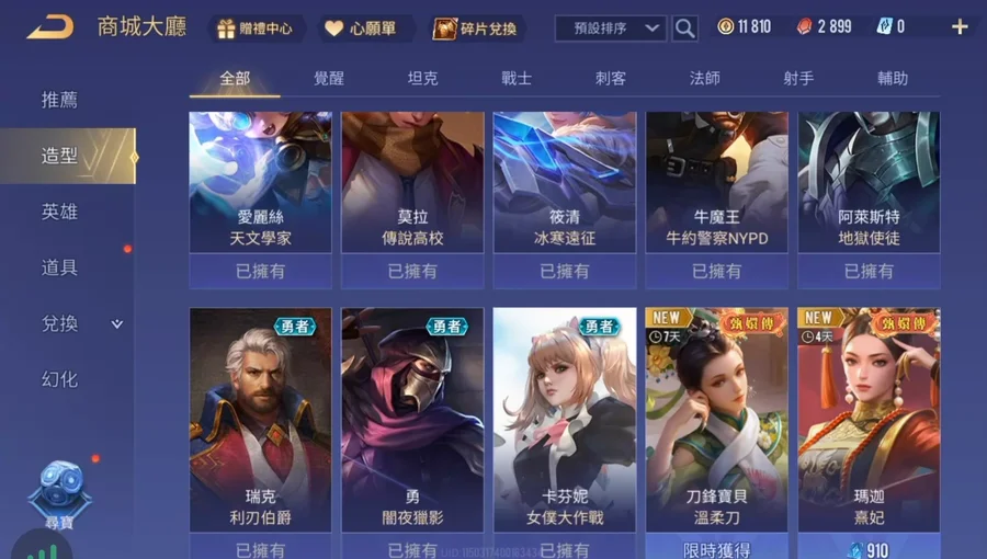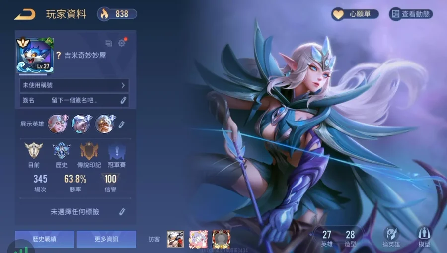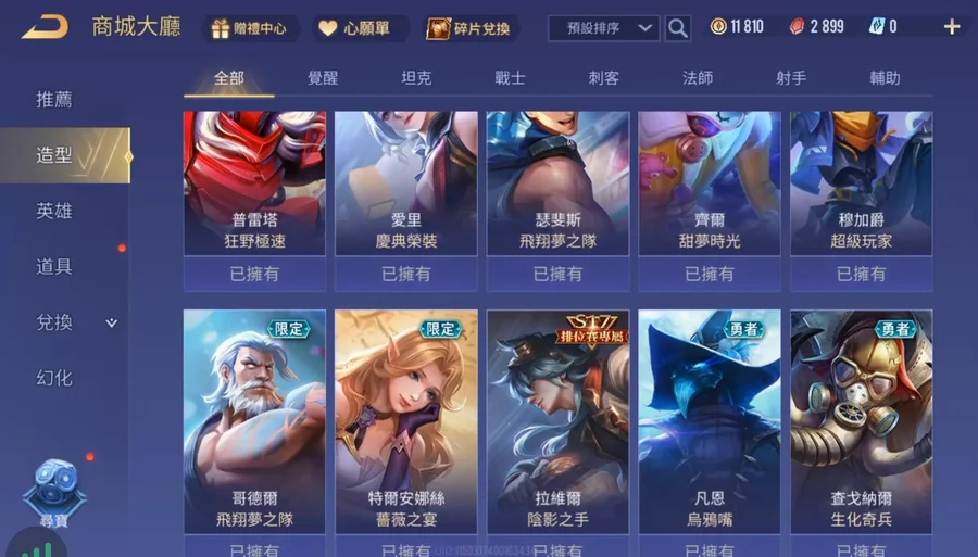 傳說對決台服帳 初始號 入坑號 27英雄28造型 可改名 無綁定 回歸獎勵 有90奧義 garena登入安卓蘋果都可以
