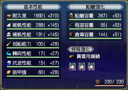 【強化性能】四滿:双帆滿、抗波滿、轉向滿