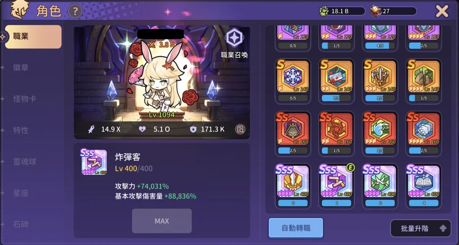 寶石提煉14等 (寶石已上滿,等材料齊直上)