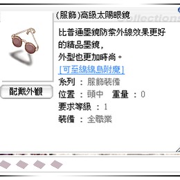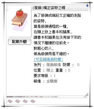 另有水手服 = 50T向日葵頭飾 = 50T貓心妄想 = 50T矯正姿勢之帽 = 50T自動領帶 = 50T將領軍帽 = 50T巨龍騰帽(紅) = 50T