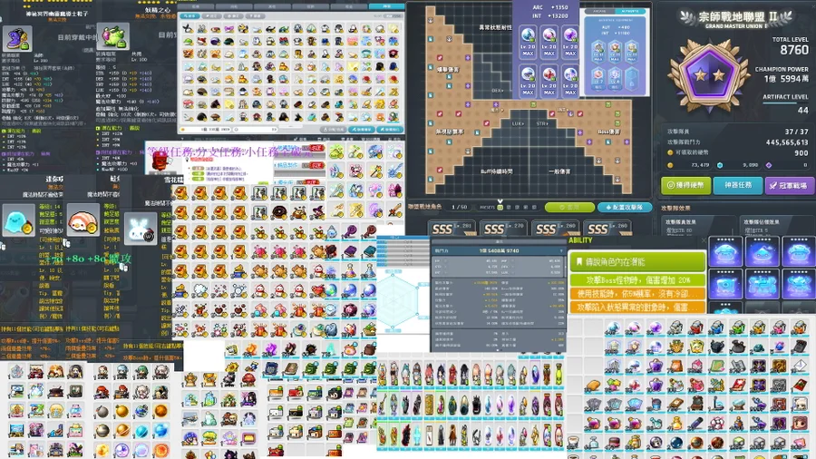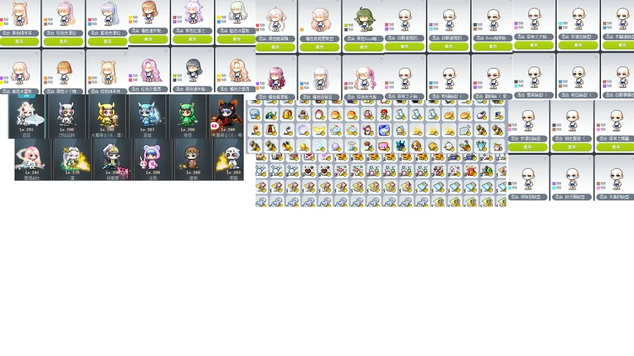 因本人喜歡什麼都玩所以除了本尊圖上外還有很多分身身上都有裝備就放在那邊等著好心人努力挖寶