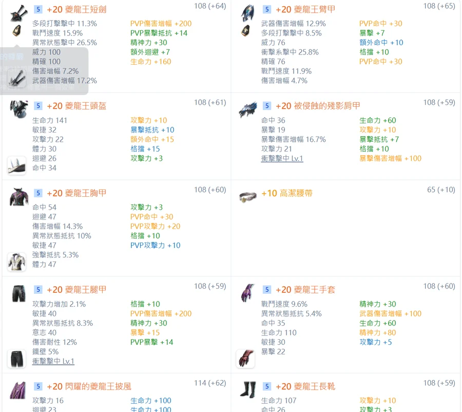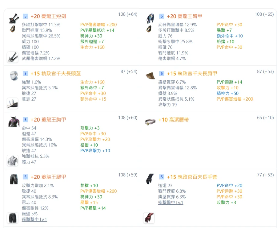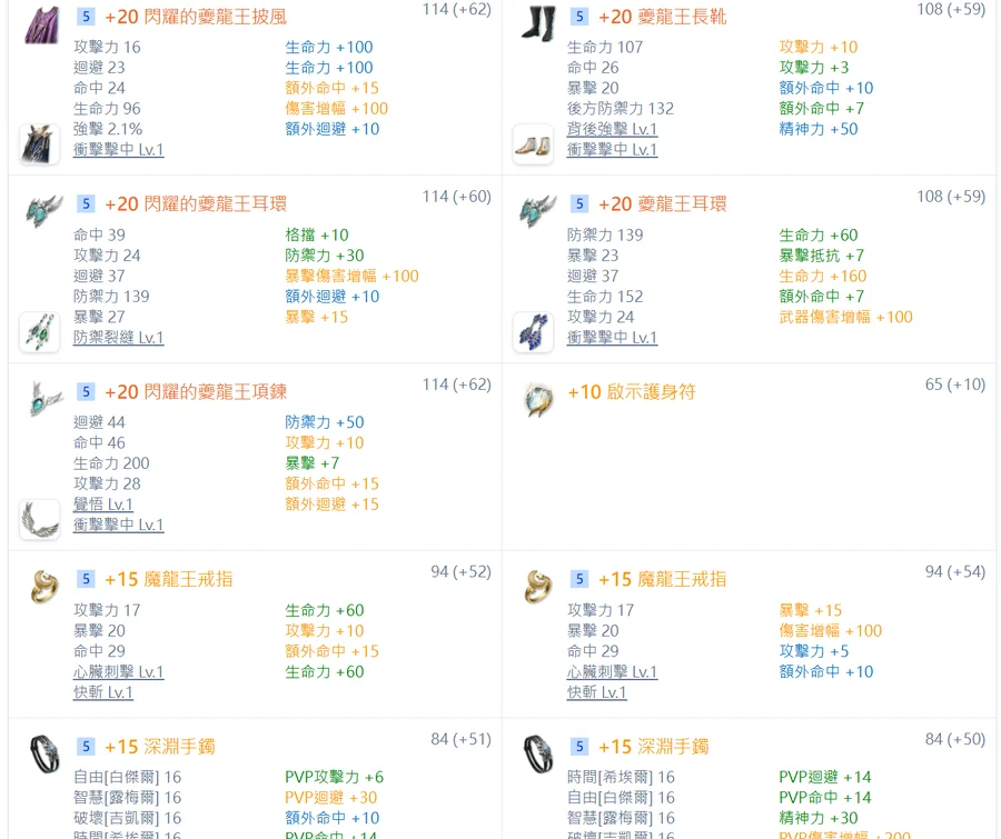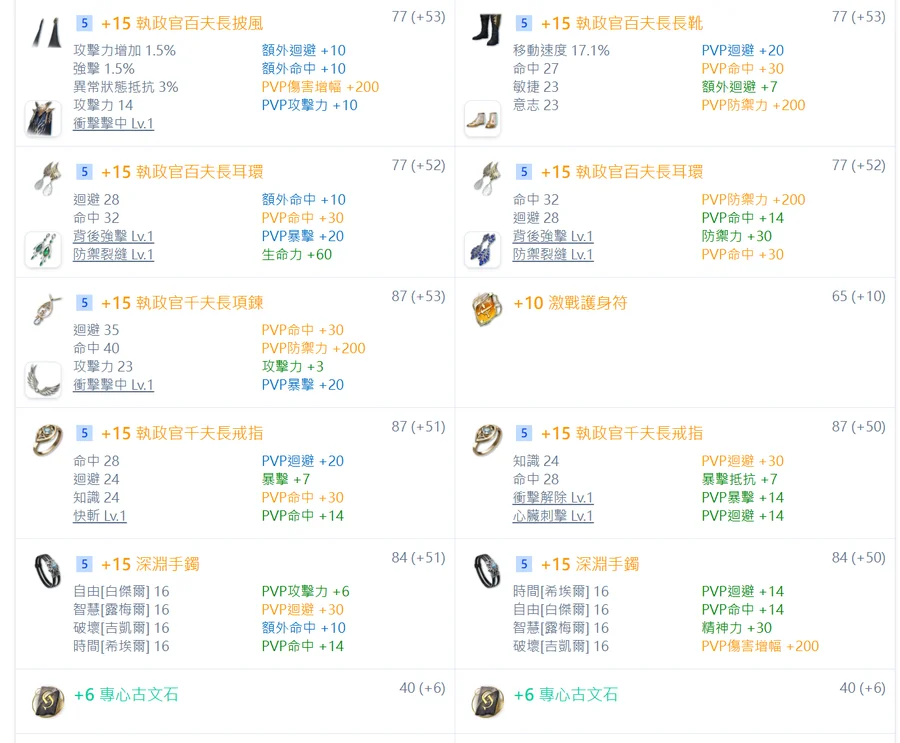 千夫頭 / 千夫肩膀 / 千夫項鍊 / 千夫戒指*2 (All pvp魔石)