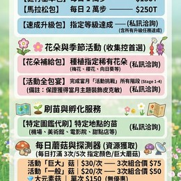 🌷 【花朵補給包】:種植指定稀有花朵(梅花、櫻花、向日葵等) —— 私訊洽詢